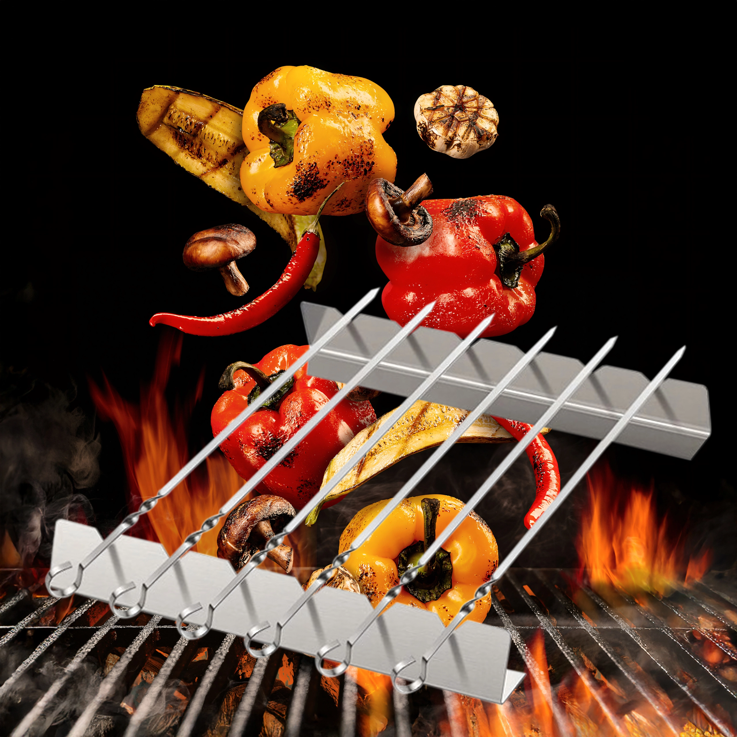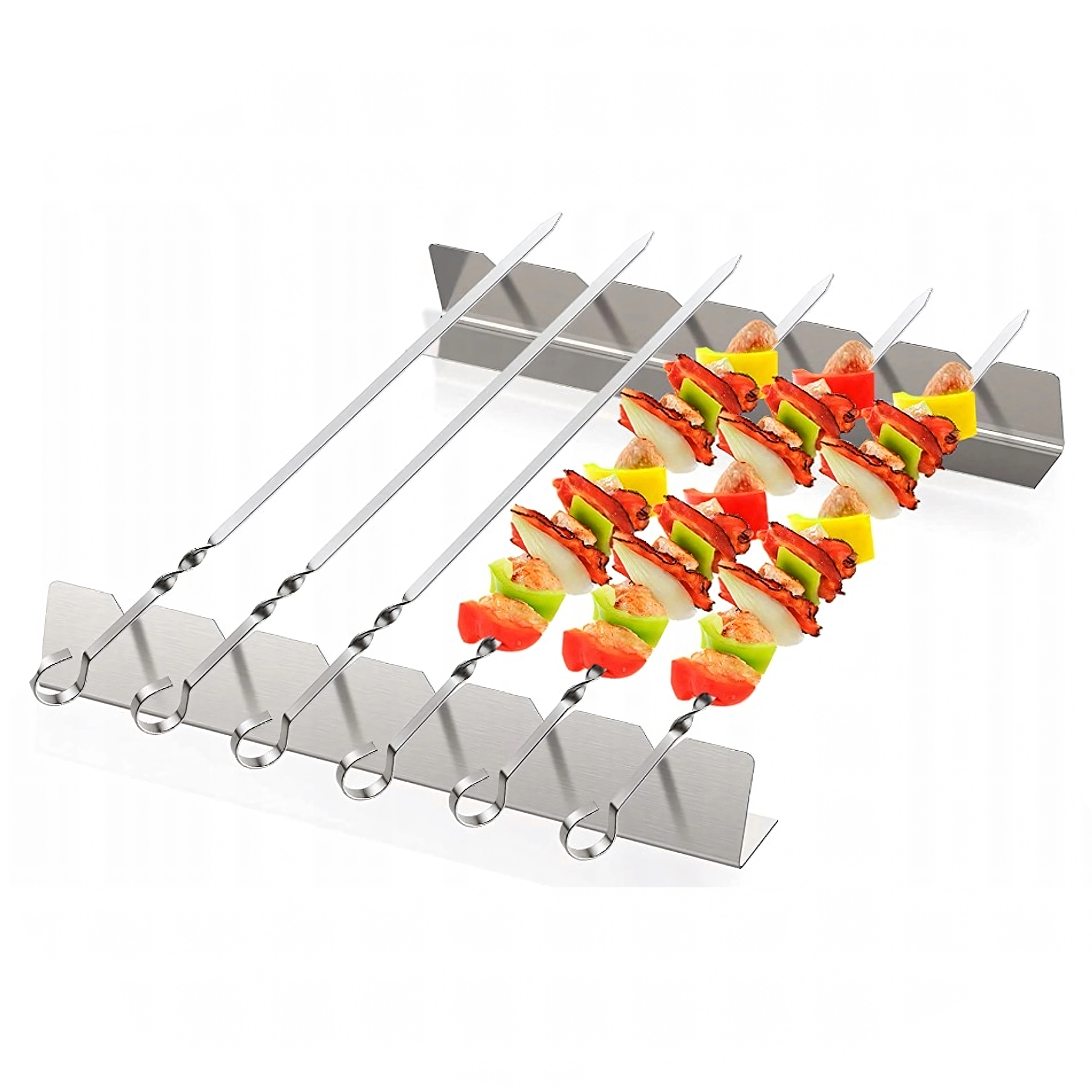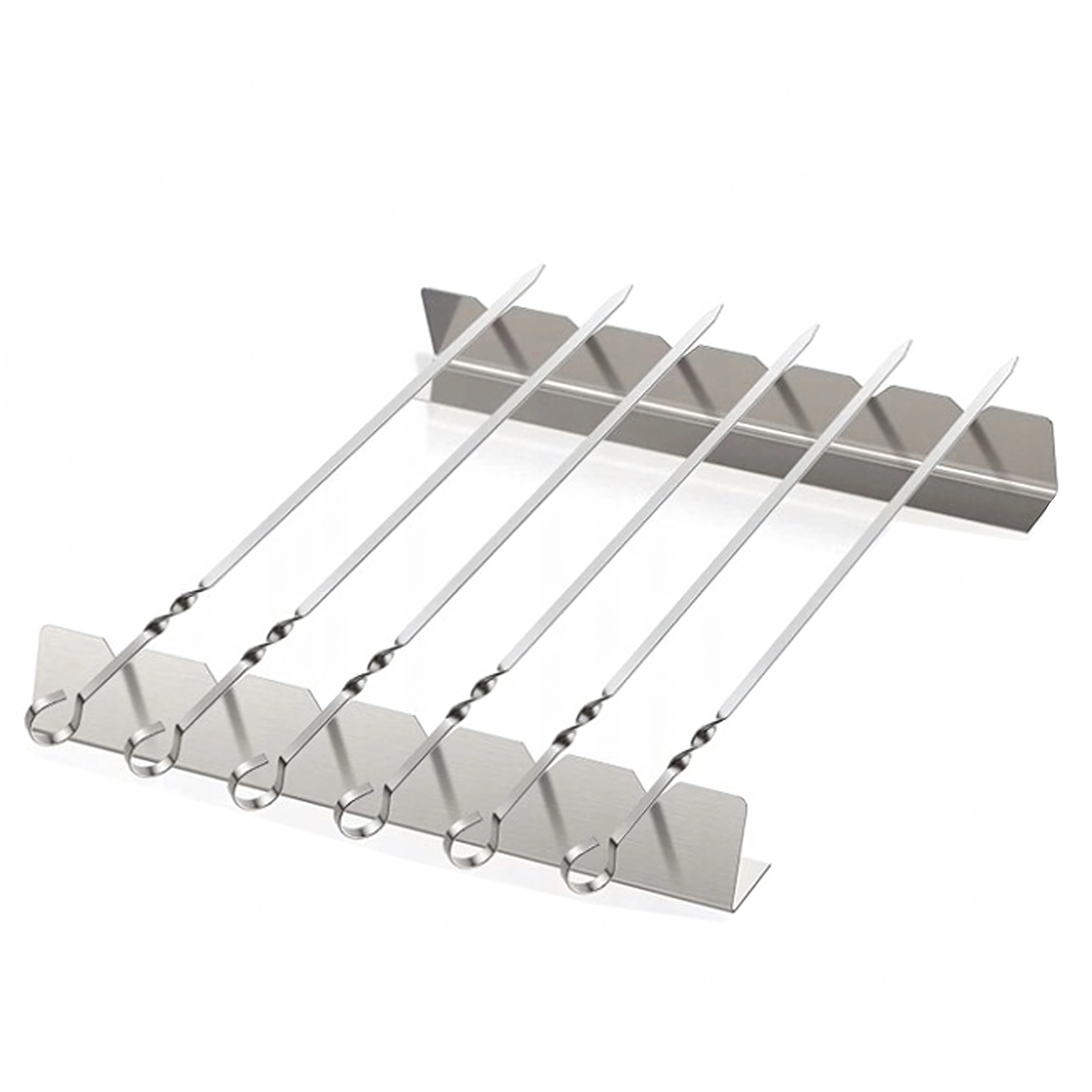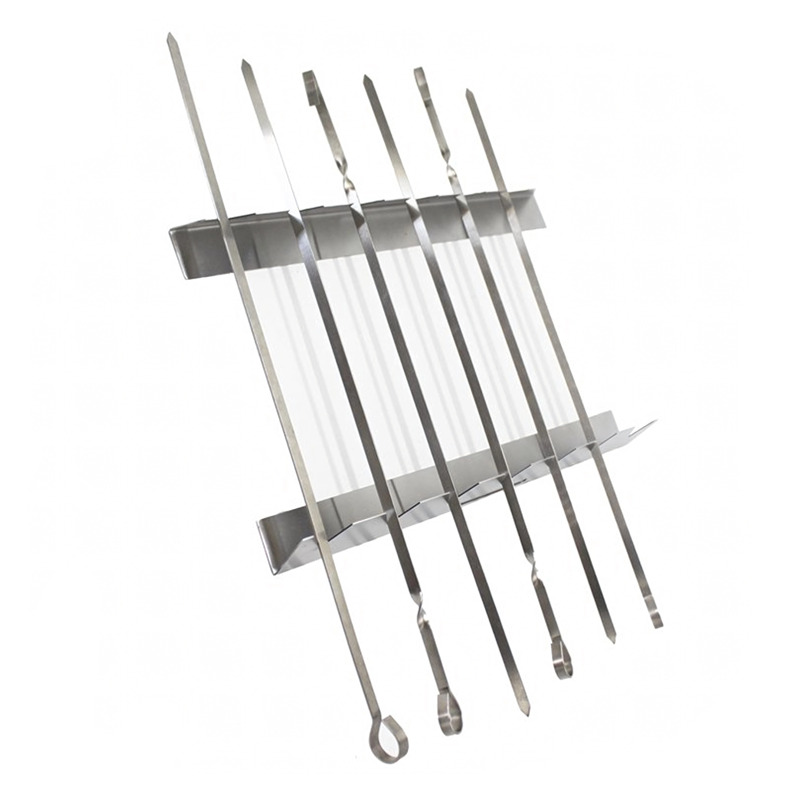 Tato kvalitní sada špízů z nerezové oceli je navržena pro pohodlné a rovnoměrné grilování masa, zeleniny i mořských plodů. Ploché čepele brání otáčení potravin, zatímco výškově oddělený stojan udrží špízy nad žárem pro rovnoměrné propečení bez připékání.