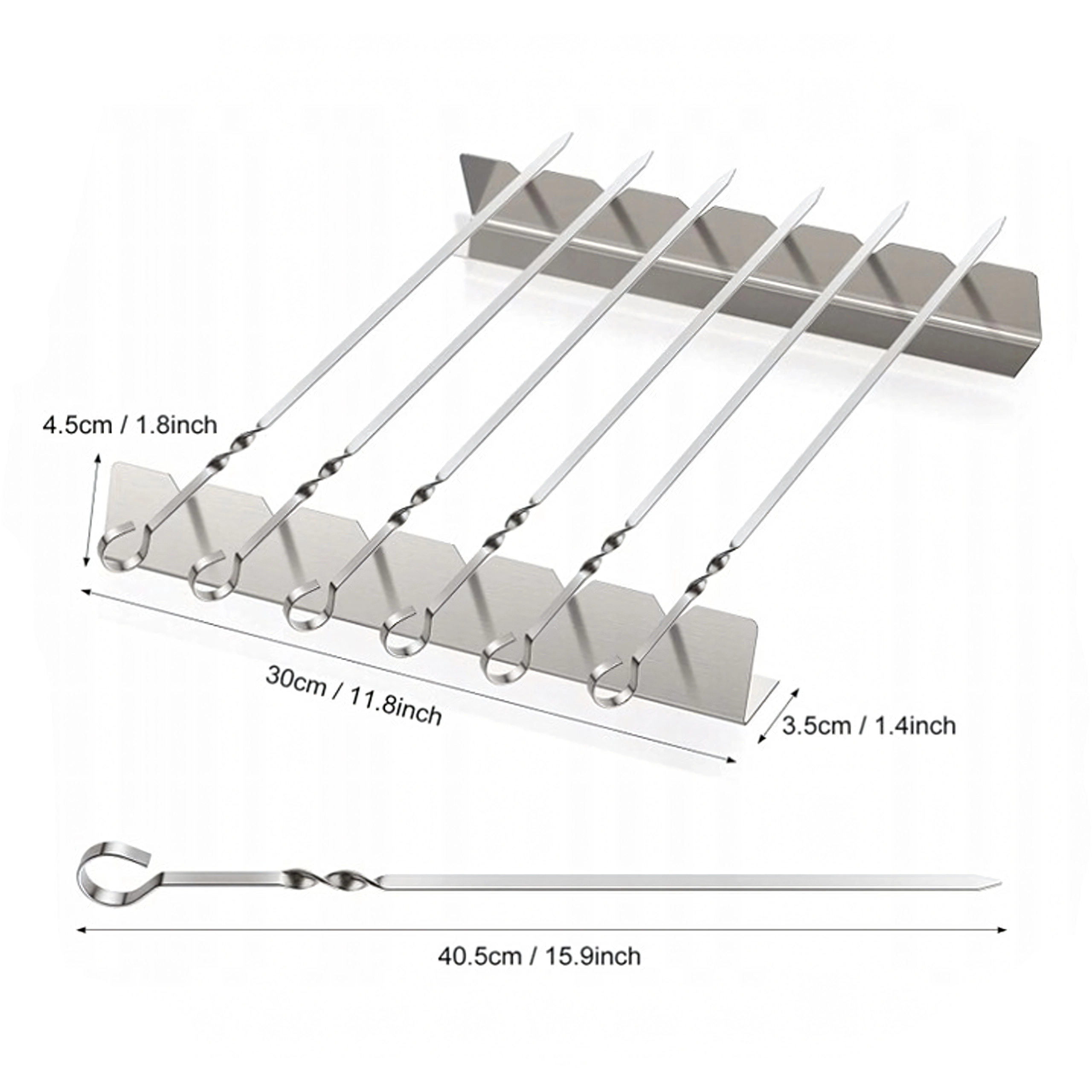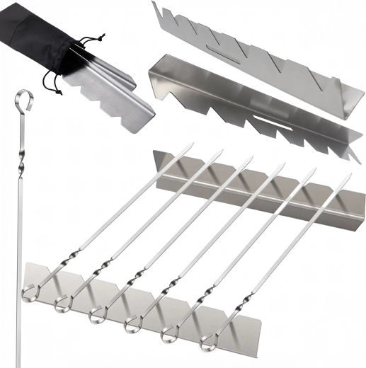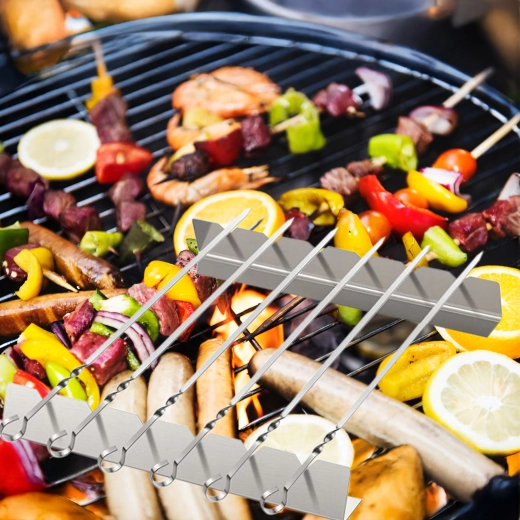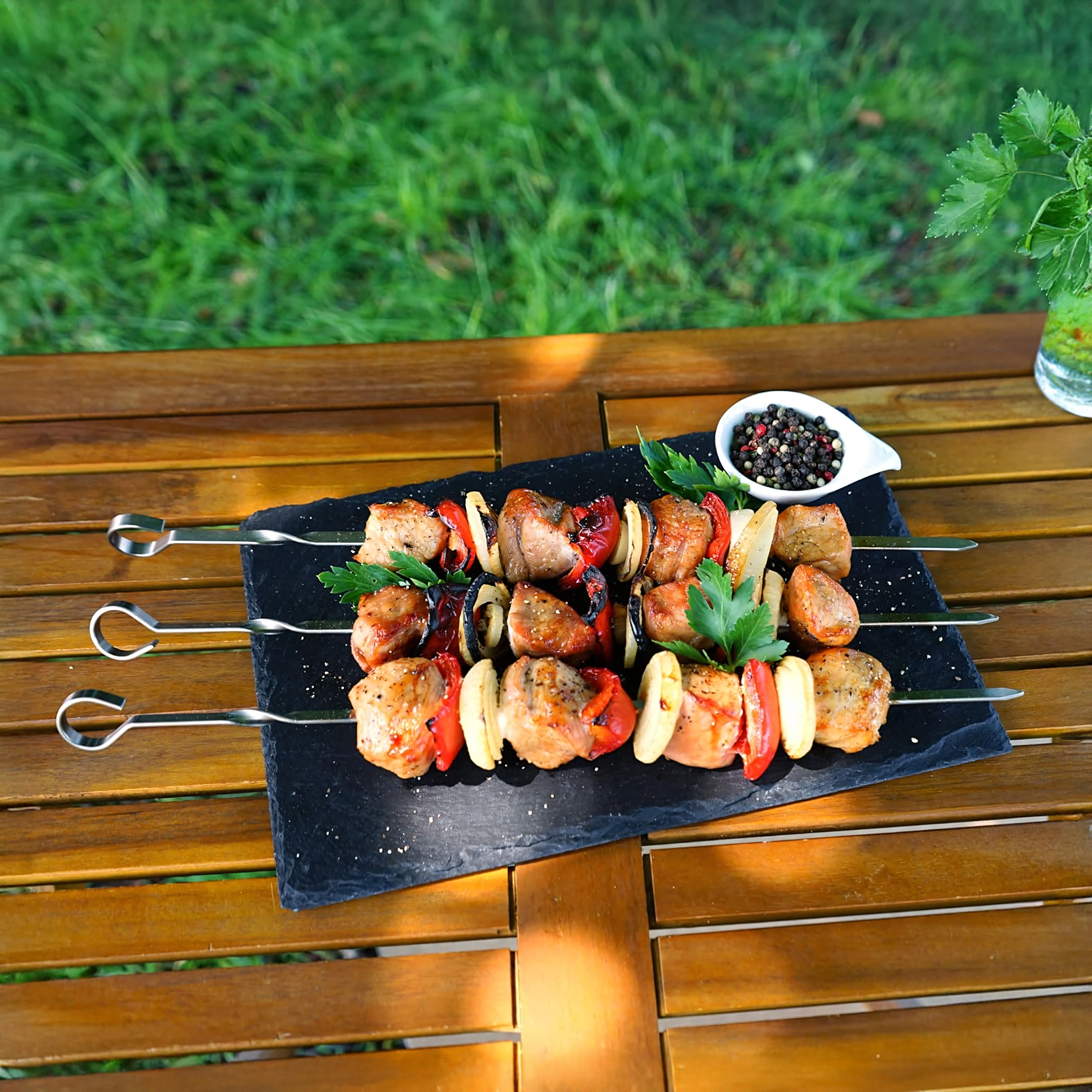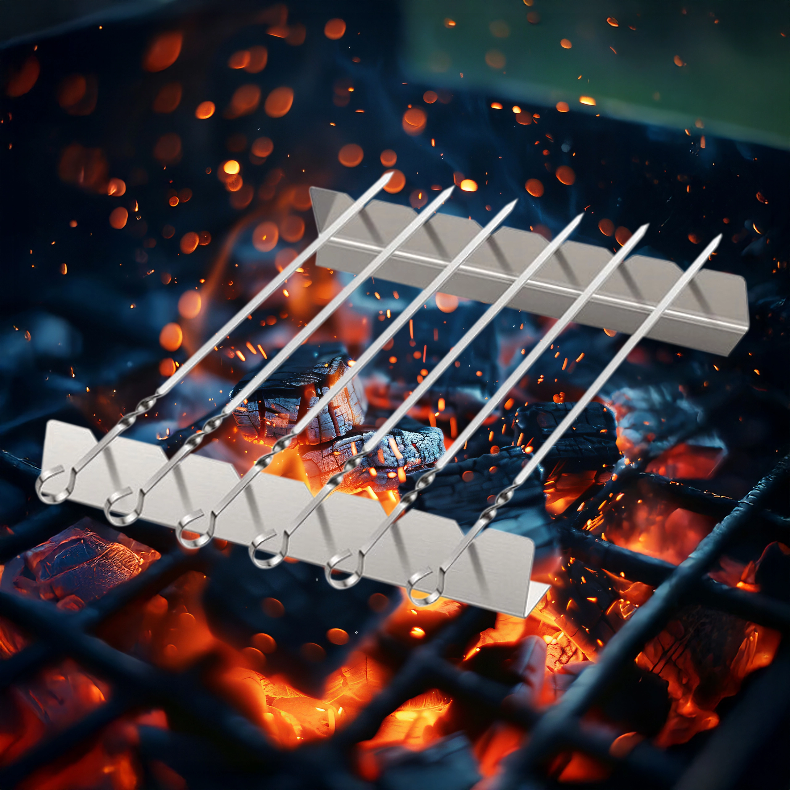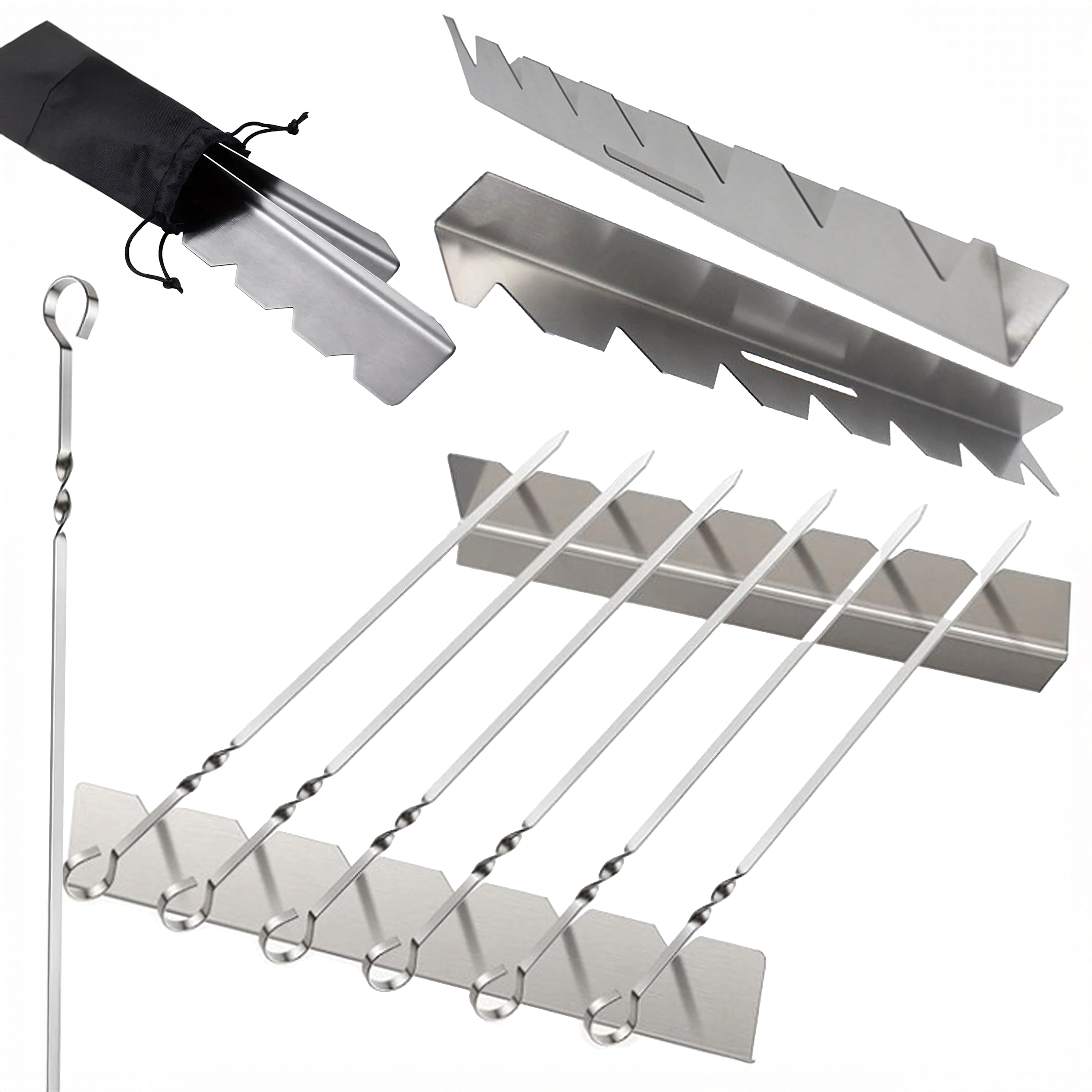 Tato kvalitní sada špízů z nerezové oceli je navržena pro pohodlné a rovnoměrné grilování masa, zeleniny i mořských plodů. Ploché čepele brání otáčení potravin, zatímco výškově oddělený stojan udrží špízy nad žárem pro rovnoměrné propečení bez připékání.