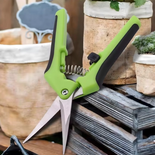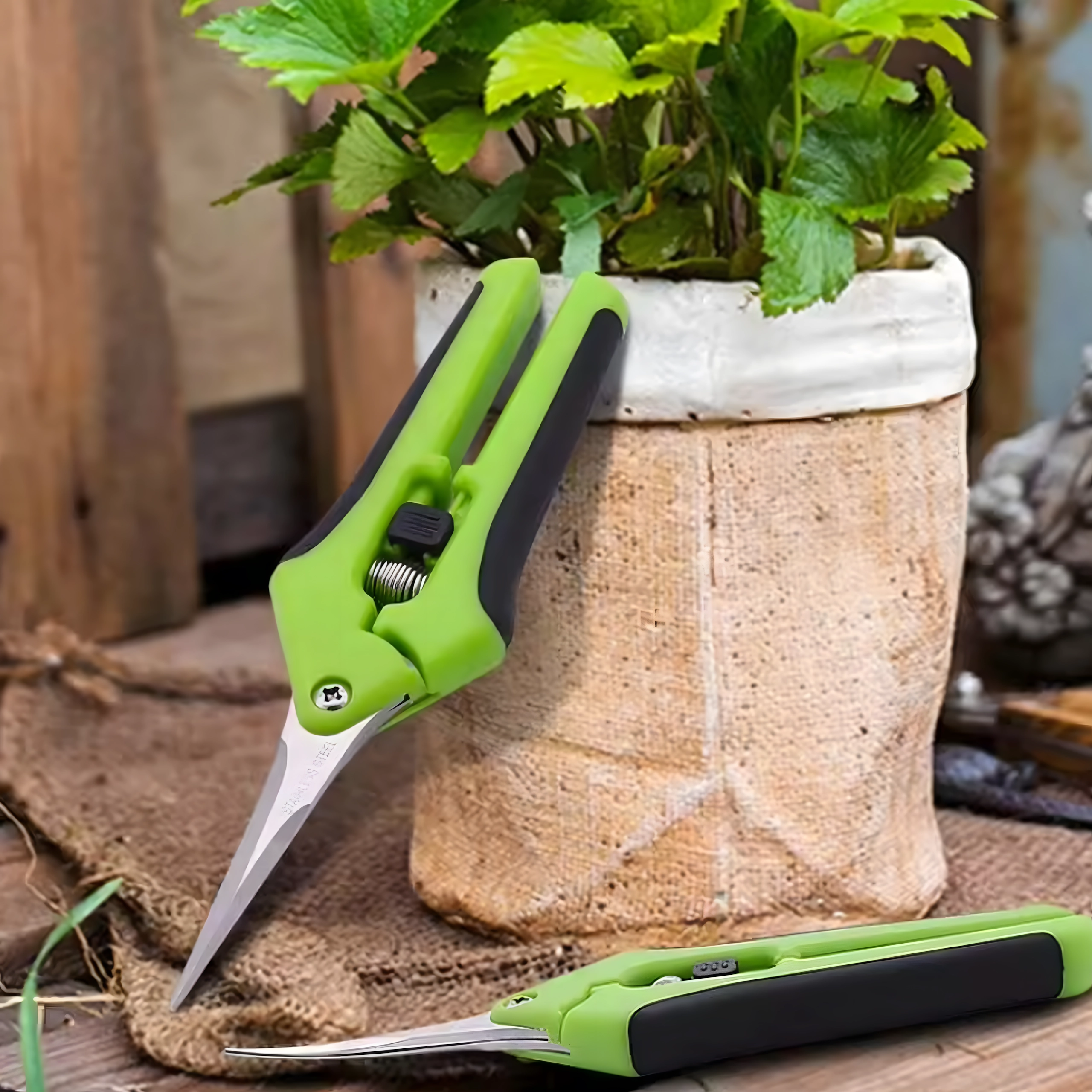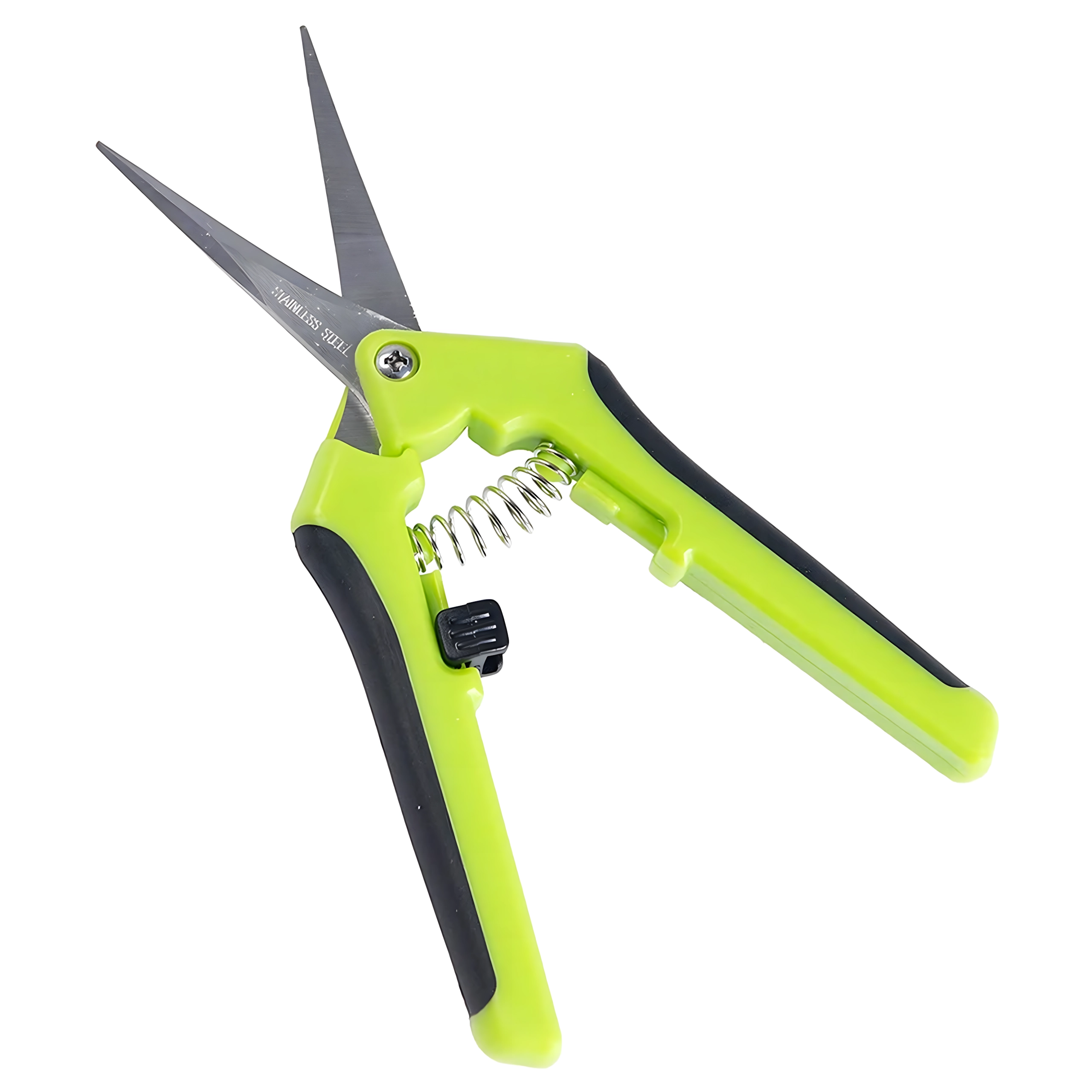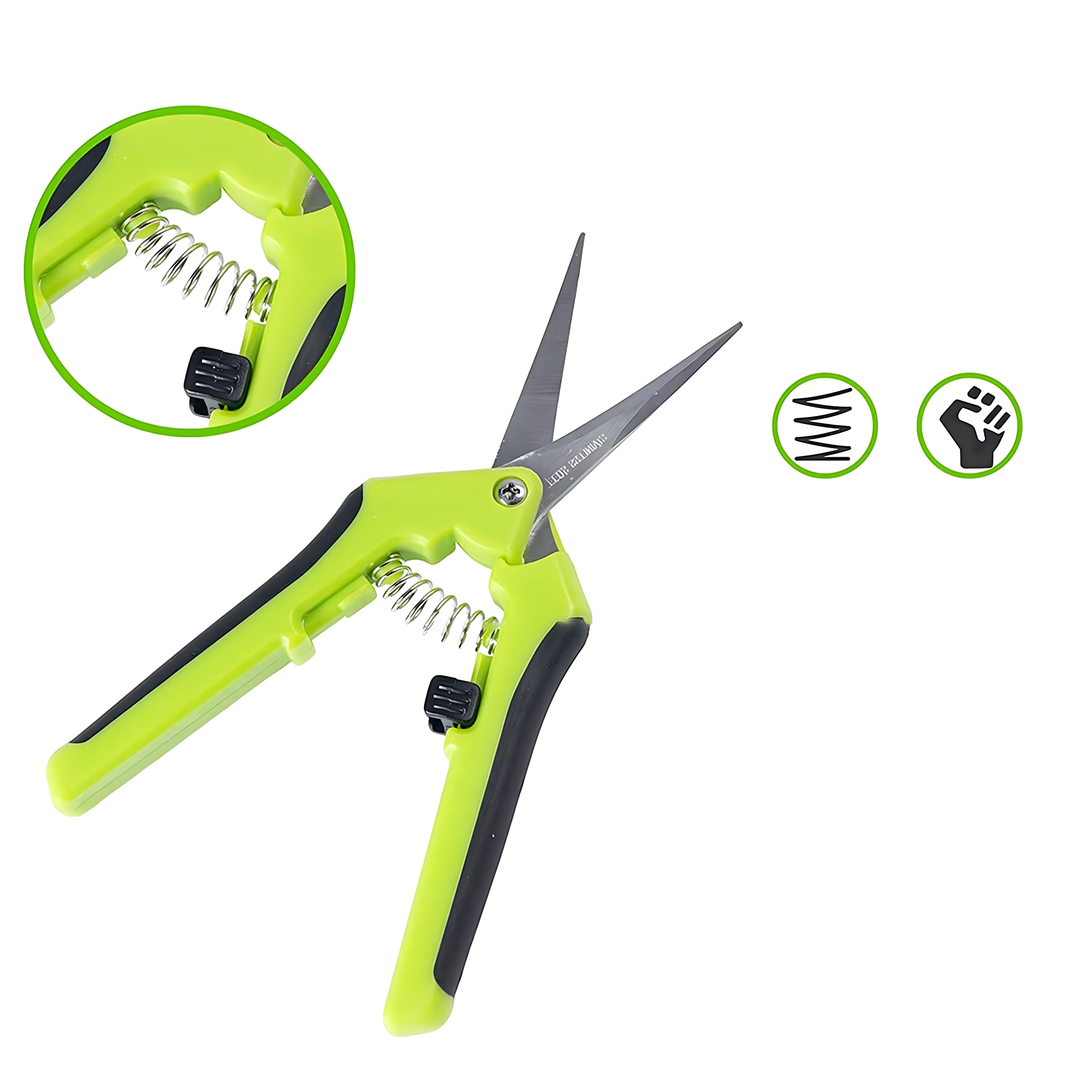 Tyto lehké a přesné zahradní nůžky jsou ideální pro jemné tvarování pokojovek, bylinek, květin i mladých výhonků na zahradě. Dlouhé, špičaté čepele z nerezové oceli zajišťují čistý řez bez třepení, zatímco pružinový mechanismus vrací čepele po každém střihu zpět – pro rychlou, pohodlnou a jednoruční práci.