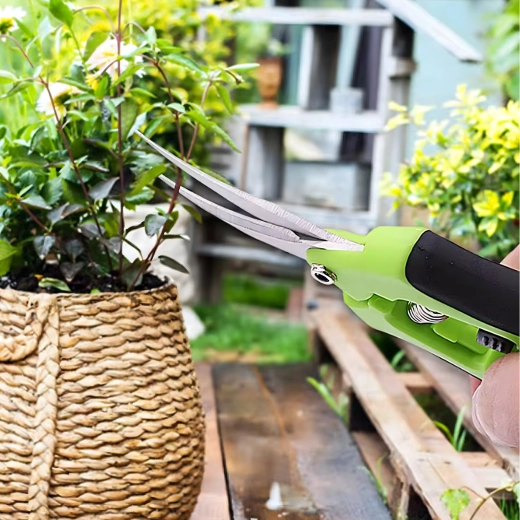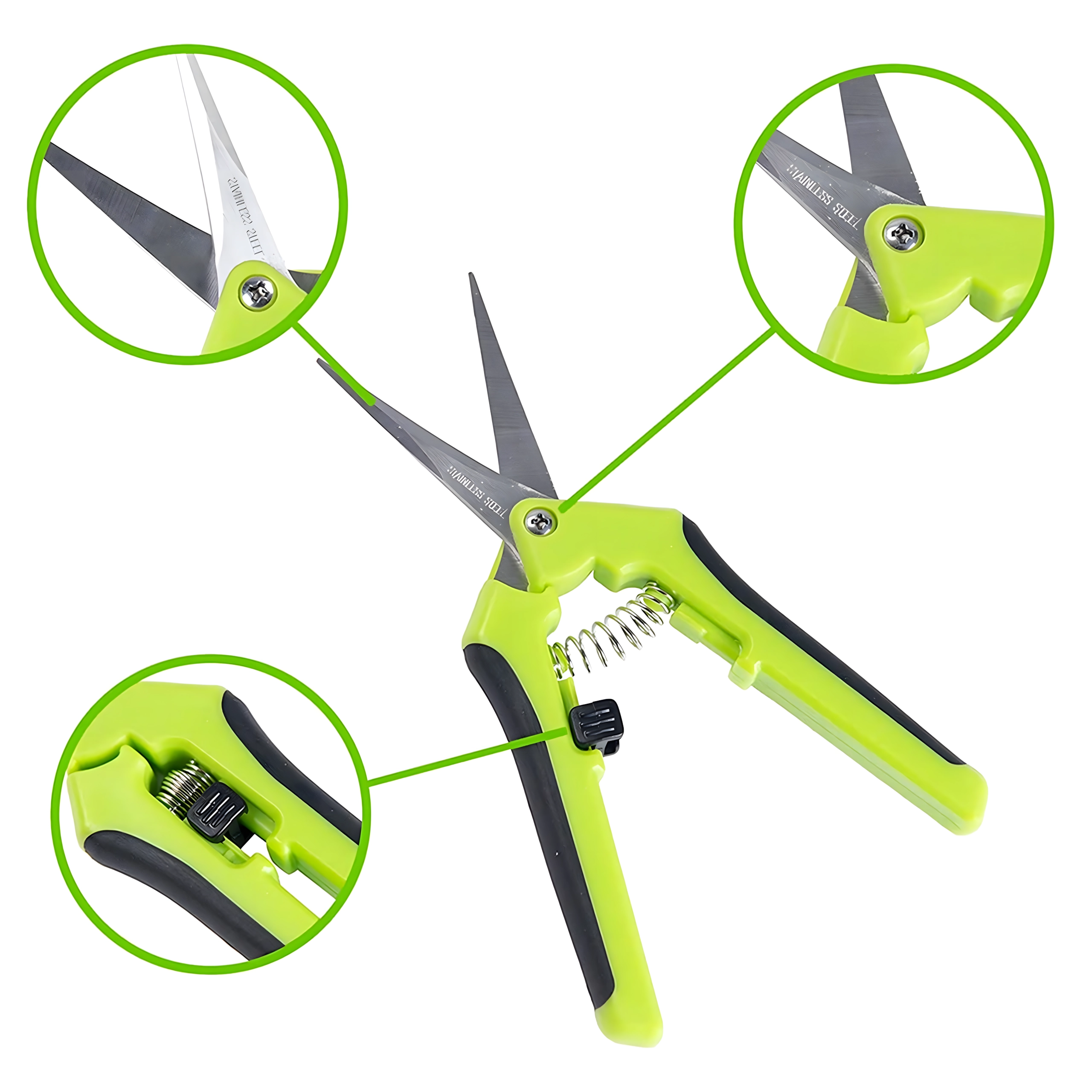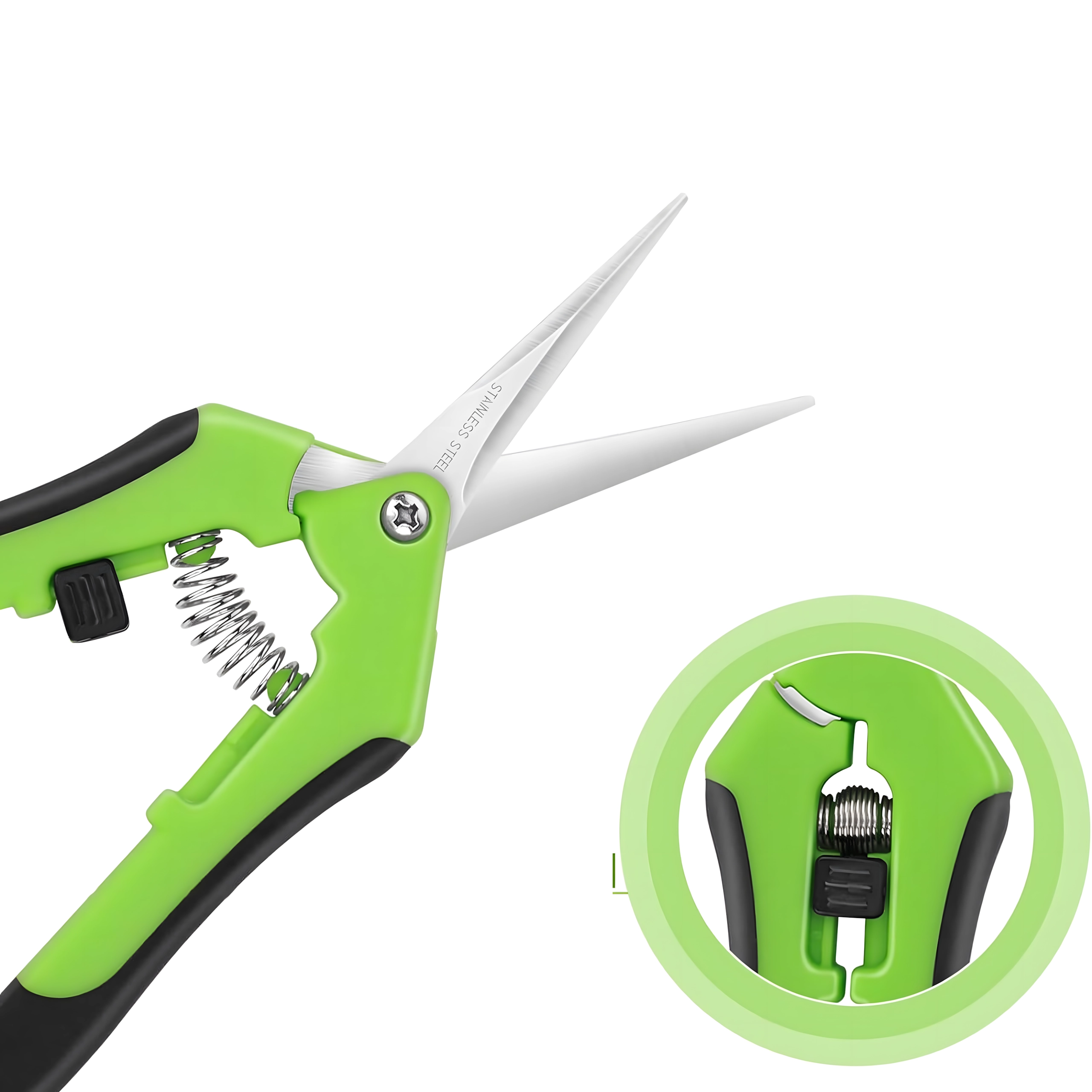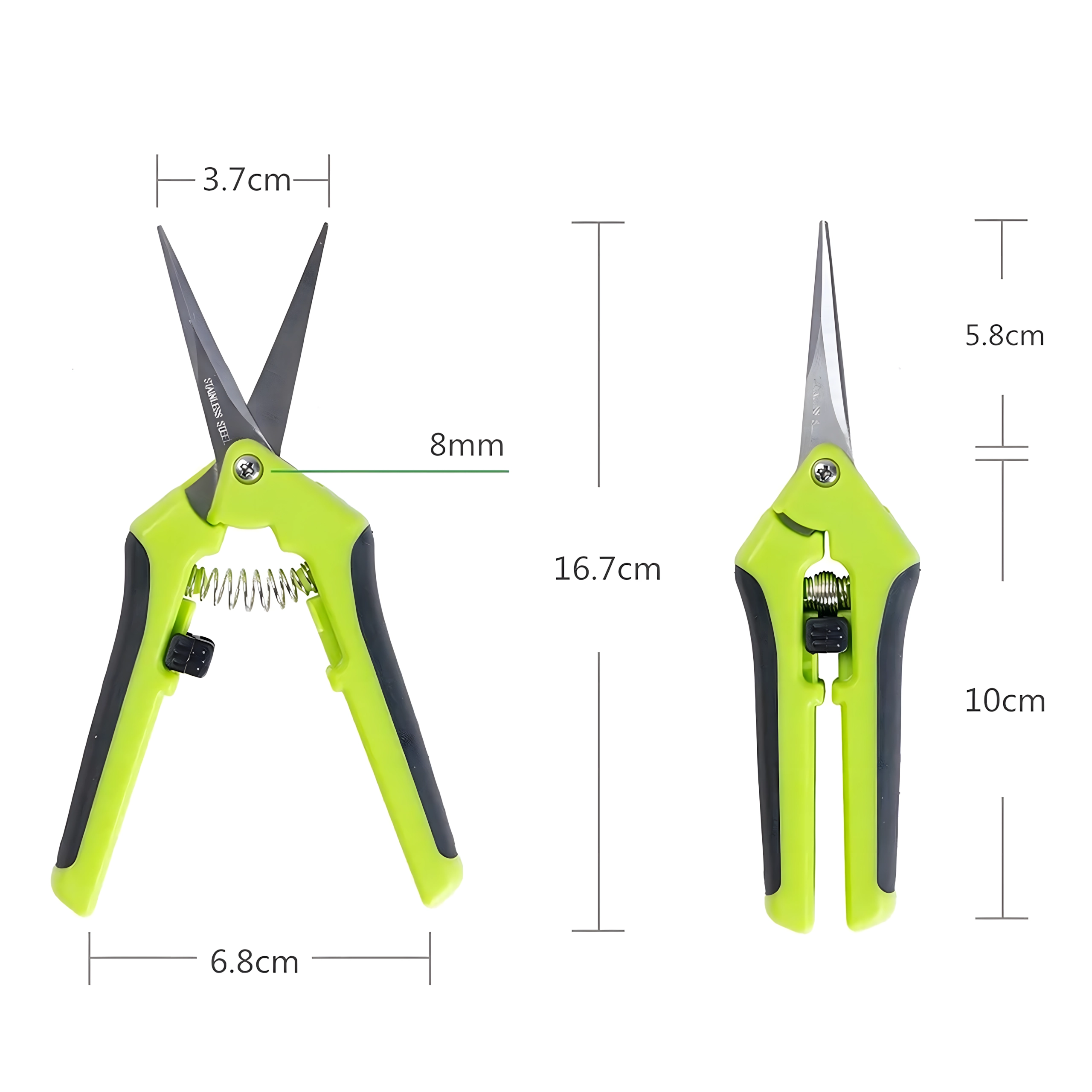 Tyto lehké a přesné zahradní nůžky jsou ideální pro jemné tvarování pokojovek, bylinek, květin i mladých výhonků na zahradě. Dlouhé, špičaté čepele z nerezové oceli zajišťují čistý řez bez třepení, zatímco pružinový mechanismus vrací čepele po každém střihu zpět – pro rychlou, pohodlnou a jednoruční práci.