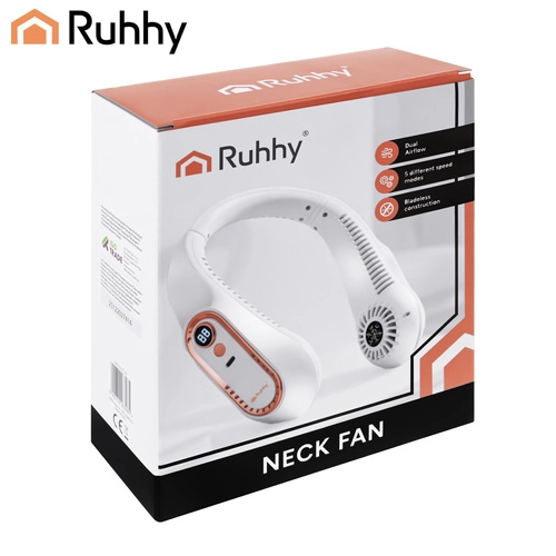 Lehký a skladný nákrční ventilátor RUHHY přináší rovnoměrné ochlazení obličeje, krku i šíje bez nutnosti držet ventilátor v ruce. Duální proudění 360° rozvádí vzduch kolem celé šíje, zatímco 5 úrovní rychlosti umožní přizpůsobit výkon od jemného vánku až po intenzivní osvěžení během horkých dnů. Bezlopatkový design je bezpečný i pro dlouhé vlasy a příjemný pro dlouhodobé nošení.