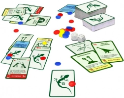- 84 karet živočichů a vlastností; barevné žetony tukových zásob a potravy (4× žlutý, 7× modrý, 14× červený); 2 šestiboké kostky; český a slovenský návod