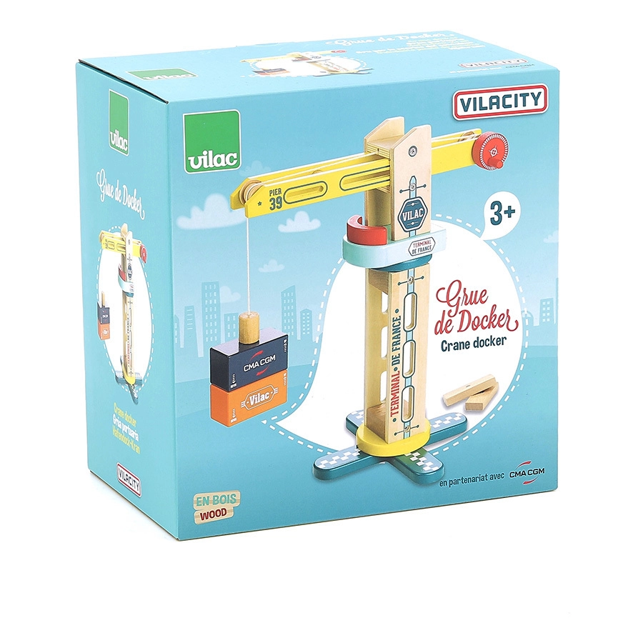 Jeřáb je součástí oblíbené kolekce Vilacity a je plně kompatibilní s ostatními prvky řady. Další rozšíření, jako jsou nákladní lodě a auta, přinášejí ještě větší variabilitu a rozvíjejí fantazii i motoriku dětí.
