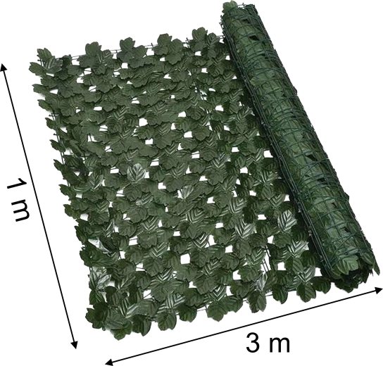 Hustá listová struktura zajistí soukromí na balkonu i zahradě, omezí průvan a zároveň zkrášlí prostředí. Materiál je odolný vůči povětrnostním vlivům a vhodný pro celoroční použití v exteriéru i interiéru.