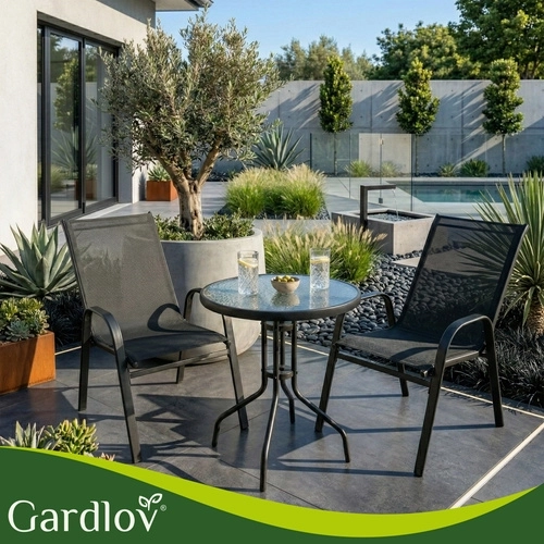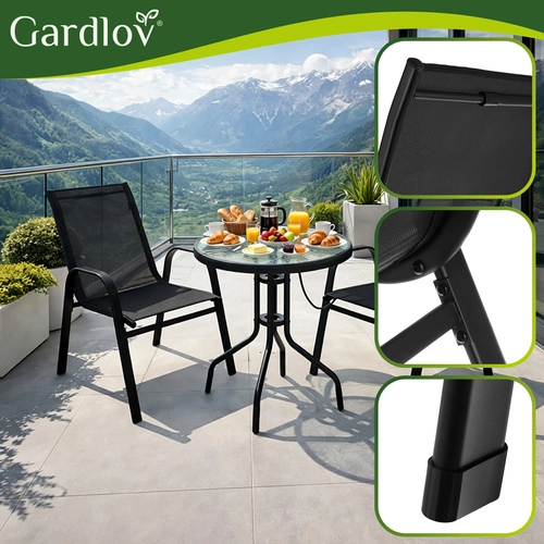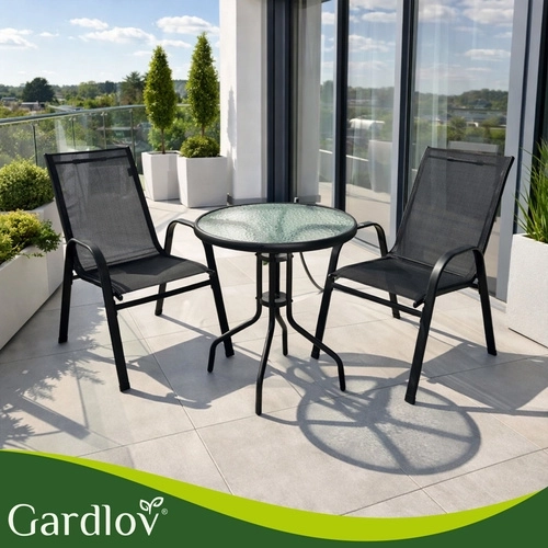 Užijte si ranní kávu na balkóně nebo večer na terase v maximálním pohodlí. Sada zahradních židlí GARDLOV (2 kusy) kombinuje stabilní železnou konstrukci s práškovým lakováním, odolnost vůči UV a vodě a komfortní prodyšné čalounění z PVC. Židle lze stohovat pro úsporu místa, snadno se čistí a montáž zvládnete během 10 minut díky srozumitelné obrazové instrukci a videu.