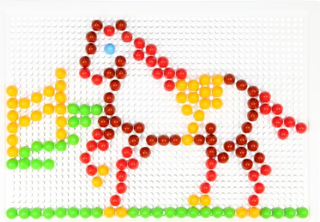 V sadě je 200 pevných, hladkých kloboučků (10 mm), které dobře drží v perforované desce, a proto se s nimi komfortně pracuje a znovu tvoří. Mozaika neobsahuje předlohy, což povzbuzuje volnou kreativitu a originální nápady.