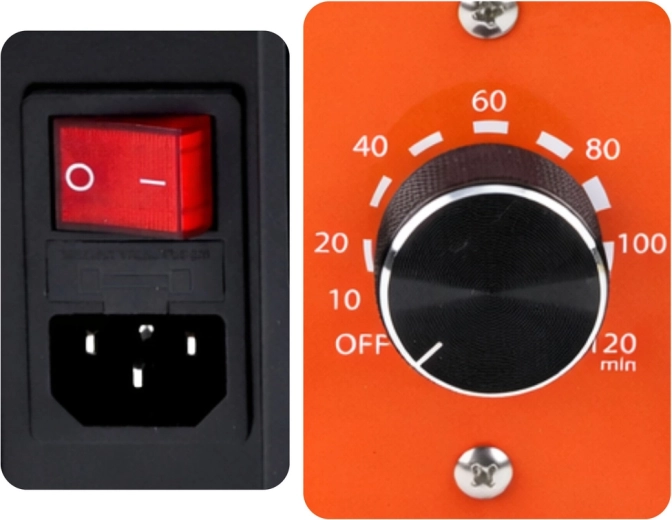 Intuitivní mechanický časovač dovolí nastavit dobu ozonace od 1 do 120 minut podle velikosti místnosti a míry znečištění. Vestavěný ventilátor zajišťuje rovnoměrnou distribuci ozonu, což zvyšuje účinnost procesu. Odolná kovová konstrukce, stabilní čtyři nožky a praktické madlo usnadňují každodenní použití i transport.