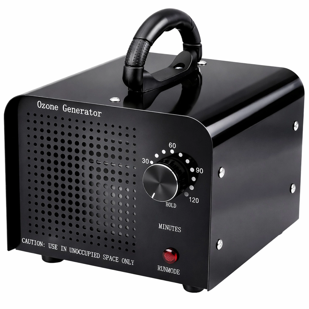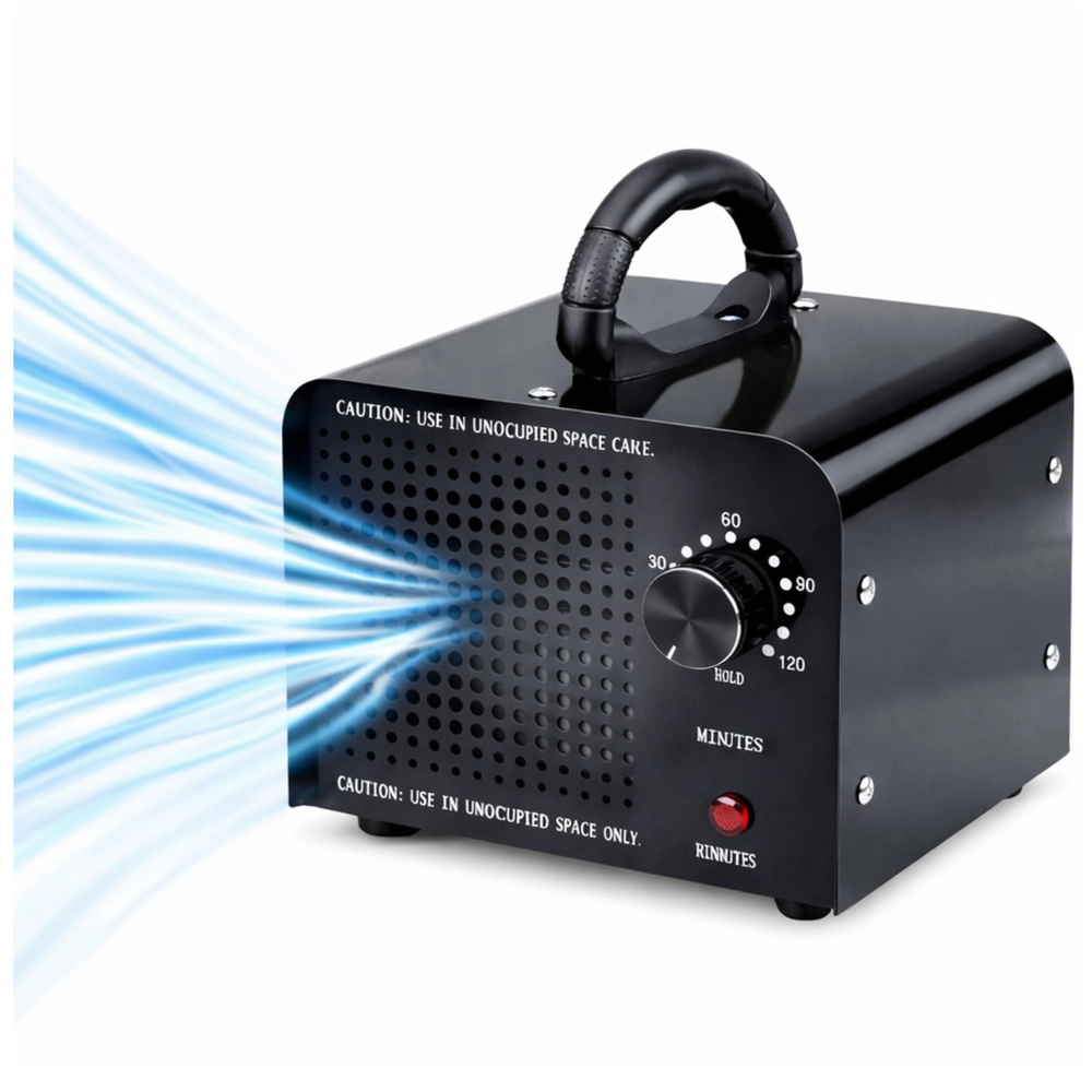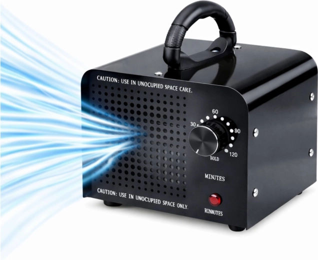 Ovládání je maximálně jednoduché – mechanický časovač 1–120 minut umožní přizpůsobit cyklus velikosti prostoru a míře znečištění. Po uplynutí nastaveného času se zařízení automaticky vypne. Masivní kovová konstrukce, stabilní nožky a vestavěný ventilátor se postarají o dlouhou životnost a rovnoměrnou distribuci ozonu.