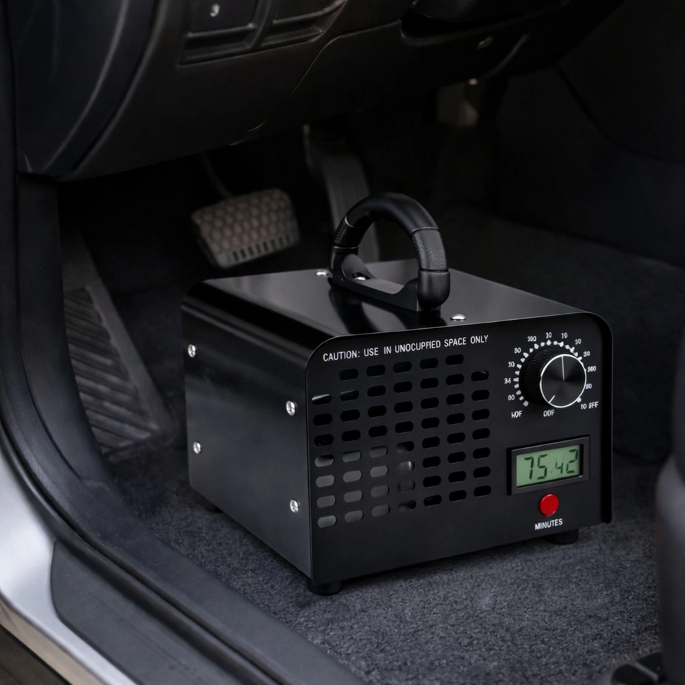 Výkonný ozonový generátor LEAN účinně dezinfikuje vzduch a odstraňuje pachy v místnostech i vozidlech. Díky kapacitě 60 000 mg/h spolehlivě neutralizuje bakterie, viry, plísně a alergeny, proniká do čalounění a ventilace a likviduje zdroj zápachu. Integrovaný časovač 1–120 min, robustní kovové šasi, vestavěný ventilátor a praktické madlo zajišťují bezpečné a pohodlné použití v domácnosti, kanceláři, skladu i autě.