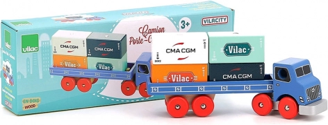Dřevěné nákladní auto Vilacity od značky VILAC je skvělým základem pro dětský svět dopravy. Součástí jsou čtyři kontejnerové bloky s magnetickým uchycením, které děti snadno nakládají, vykládají a překládají mezi tahačem a dalšími prvky světa Vilacity. Robustní dřevo, hladké hrany a syté barvy podporují bezpečnou a poutavou hru.