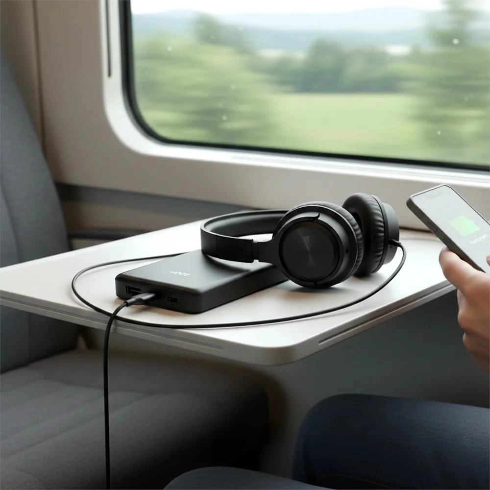 Dva USB‑C (vstup/výstup) a jeden USB‑A umožní současné napájení až tří zařízení. Skvělé pro telefon, čtečku i přenosnou konzoli.
