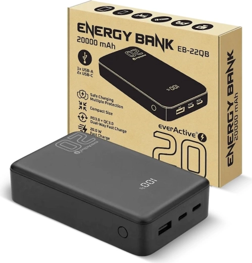 Spolehlivý zdroj energie na cesty i do kanceláře. Tato powerbanka o kapacitě 20 000 mAh a výkonu až 20 W zvládne rychle dobít moderní smartphony, tablety i drobnou elektroniku. Díky dvěma portům USB‑C (vstup/výstup) a jednomu USB‑A snadno obsloužíte až tři zařízení současně, zatímco LCD displej přesně ukáže stav baterie.