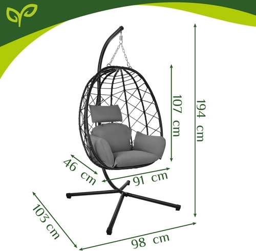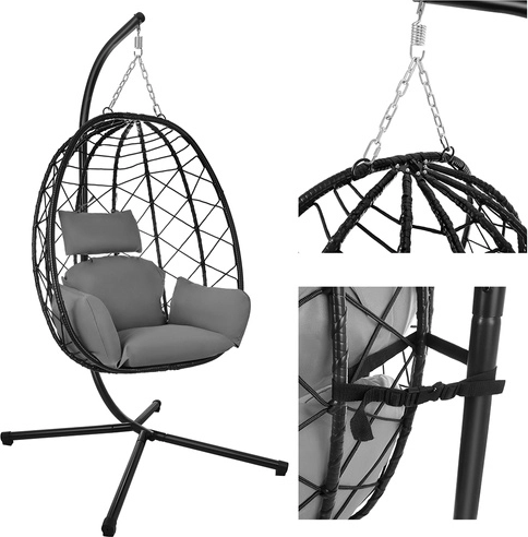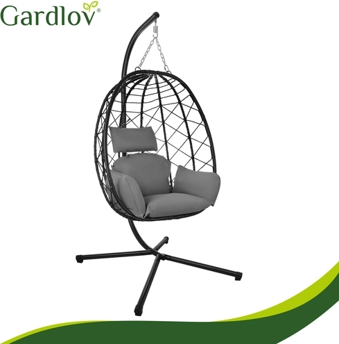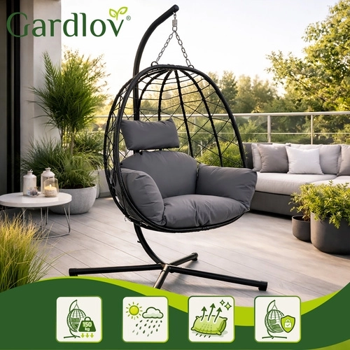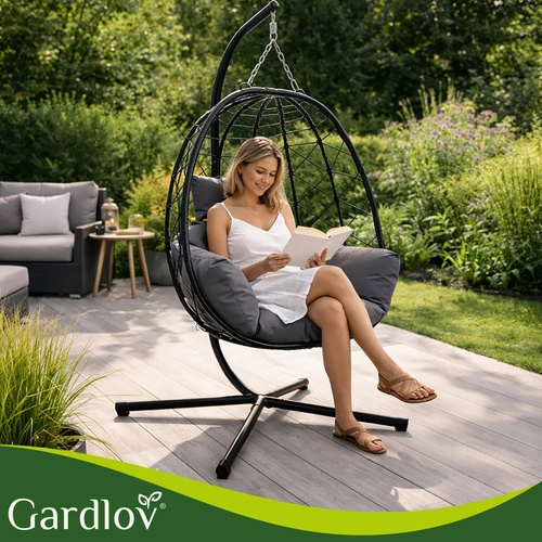 Závěsné křeslo vajíčko GARDLOV je stylový a komfortní doplněk pro venkovní i kryté prostory. Vysoká konstrukce (cca 194 cm) a hluboký sedák vytváří příjemný „kokon“, který vás obejme a zaručí ničím nerušený odpočinek. Odolný rám ze zinkované oceli se stabilní křížovou základnou a pevný závěsný řetěz poskytují bezpečí a jistotu při každém zhoupnutí.