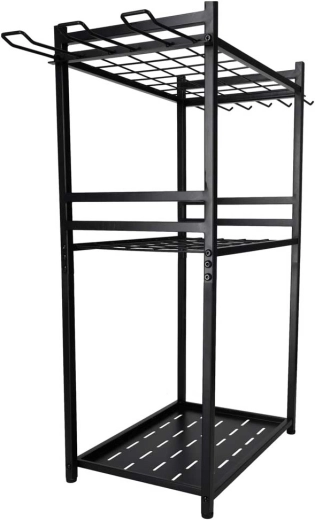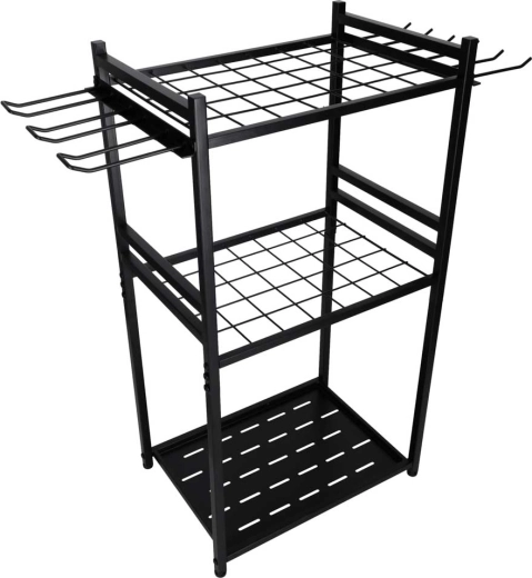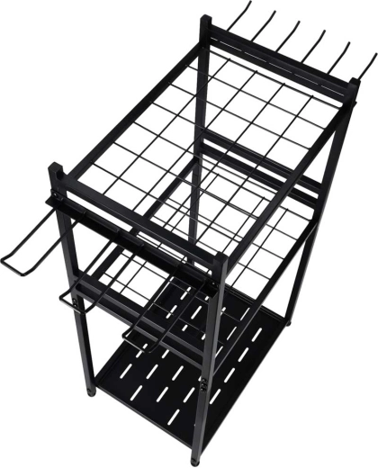 Udržujte zahradu, garáž i dílnu perfektně uspořádané s kovovým stojanem LUARO. Díky třem úrovním polic a bočním háčkům získáte přehledné uložení nářadí, rychlý přístup a stabilní, odolnou konstrukci pro každodenní používání.