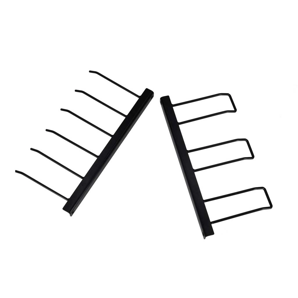 Praktické háčky po obou stranách rozšiřují kapacitu – ideální pro hrábě, košťata, lopaty či rukavice a konve.