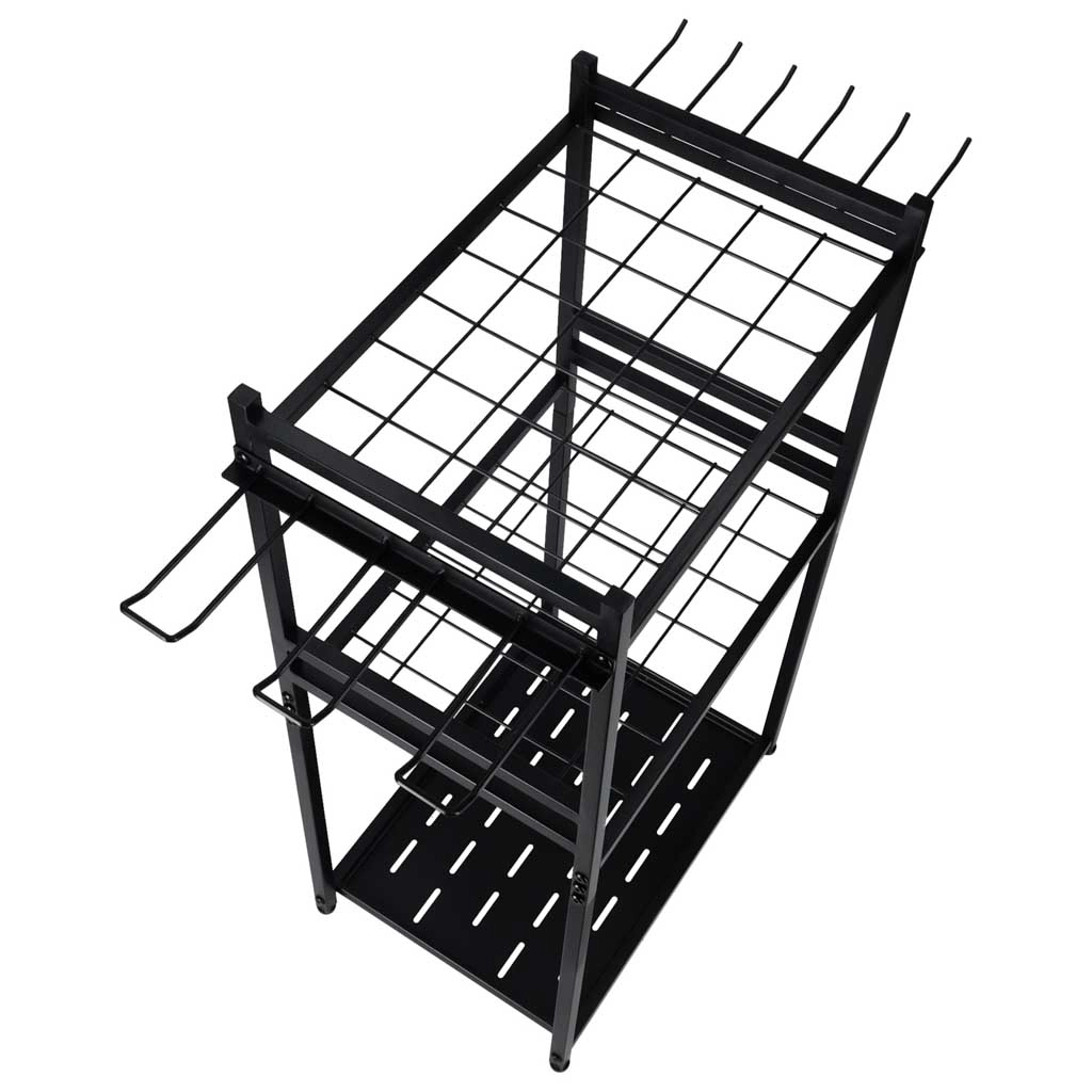 Kovový stojan na zahradní nářadí s háčky a policemi LUARO