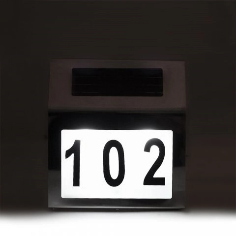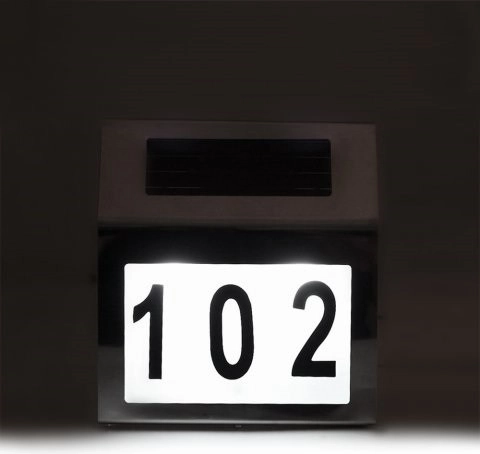 Silná LED rovnoměrně prosvětlí panel s číslem, takže je adresa snadno čitelná i za úplné tmy.