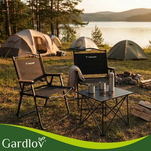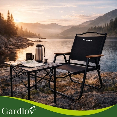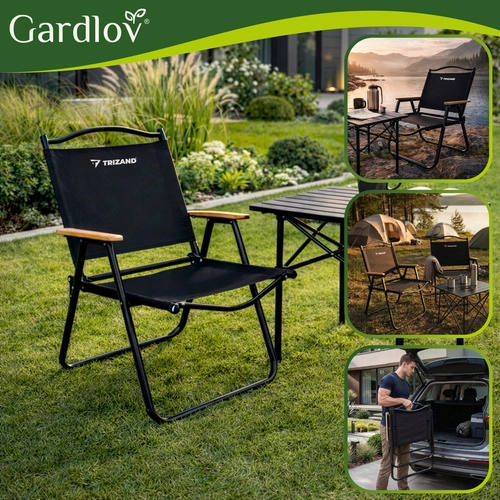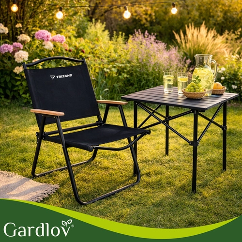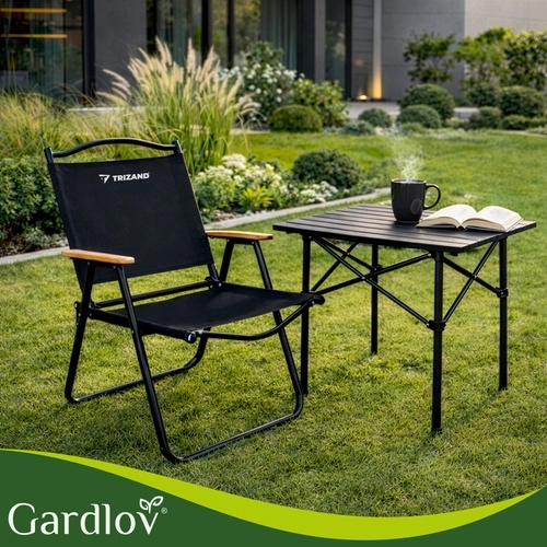 Lehké a odolné skládací zahradní křeslo TRIZAND je ideální na balkon, terasu, zahradu i kempování. Nabízí pevný kovový rám, pohodlné textilní sedák z tkaniny Oxford, dřevěné područky a rychlé skládání pro snadné přenášení a úsporu místa. Nosnost až 120 kg.