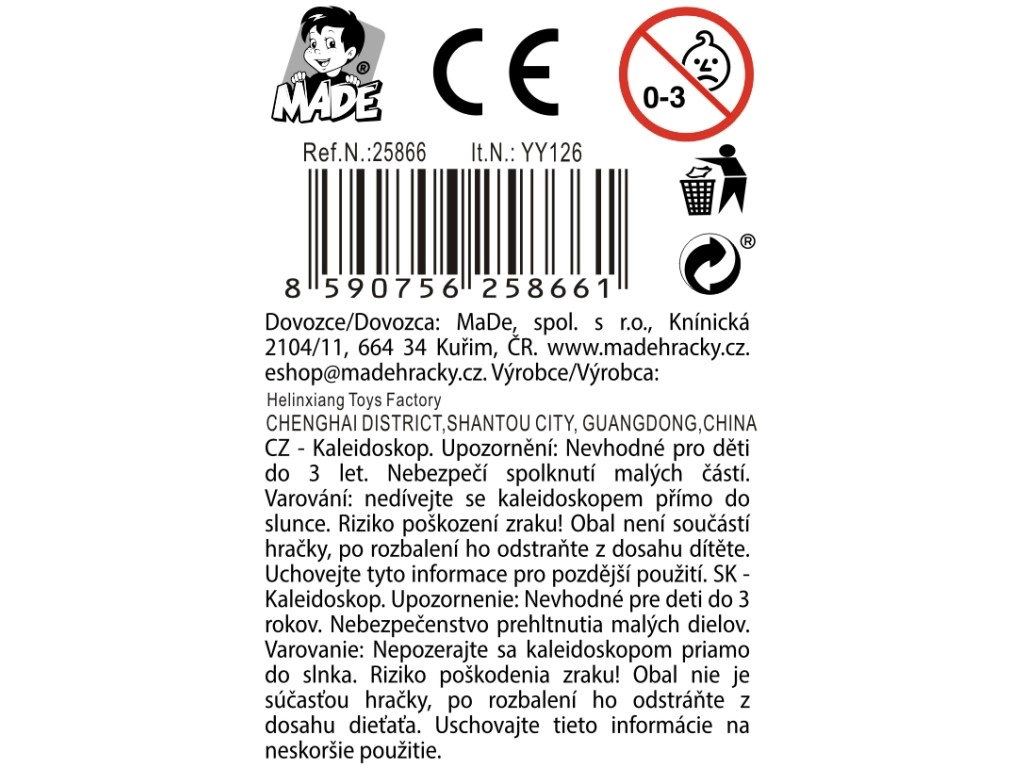 Roztočte fantazii s klasickou hračkou, která nikdy neomrzí. Tento kaleidoskop vytváří fascinující, neustále se měnící obrazce, které podněcují zvídavost, kreativitu a vizuální vnímání. Díky pestrým motivům v 5 variantách si děti mohou vybrat svůj oblíbený styl.