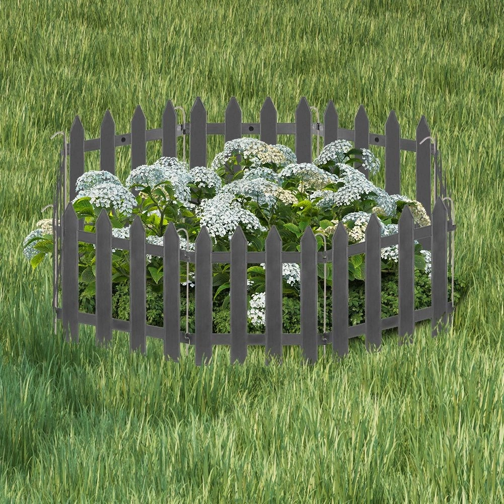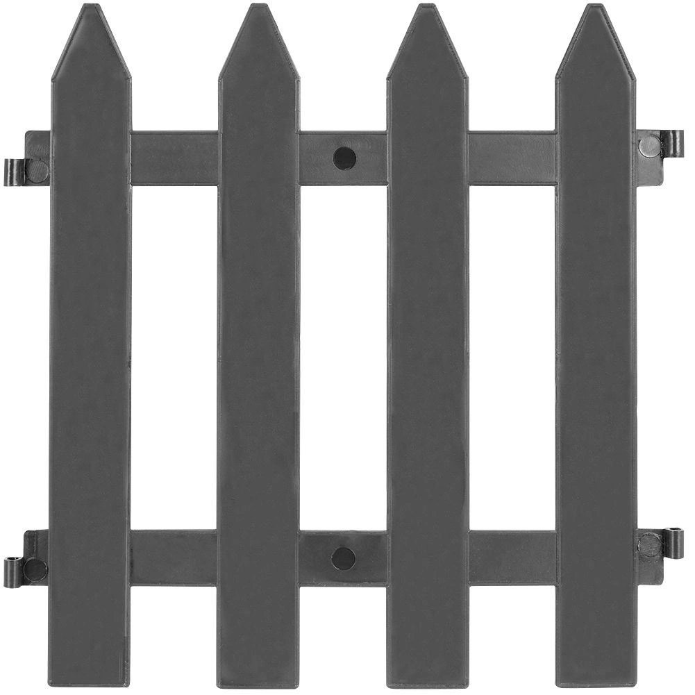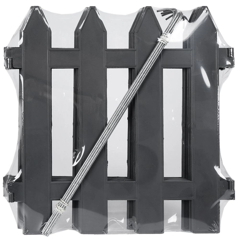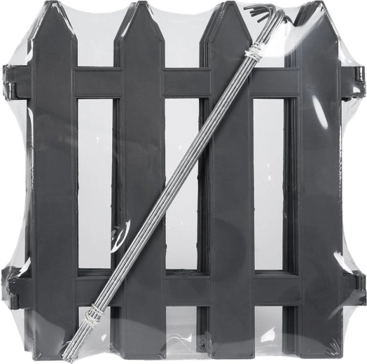 Praktický a ozdobný zahradní plůtek v elegantní grafitové barvě vytvoří čisté obrubníky záhonů a ochrání rostliny. Sada obsahuje 10 panelů o rozměru 30 × 30 cm, celková délka po sestavení je 300 cm. Snadná montáž, odolnost vůči UV záření, mrazu i dešti a dlouhá životnost díky kvalitnímu plastu a kovovým kotvám.