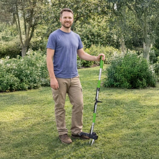 Dlouhá teleskopická násada a páka u hlavy umožňuje pracovat ve stoje a šetřit záda i kolena. Ideální pro delší práce na trávníku i záhonech.
