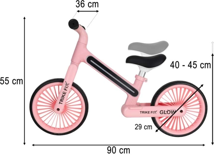 Lehké dětské odrážedlo TRIKE FIX GLOW s podsvětlenou LED rámovou lištou promění učení rovnováhy v zábavu a bezpečí. Díky nízké hmotnosti 3,6 kg, ergonomickému sedlu a bezúdržbovým EVA kolům si děti rychle osvojí jízdu bez postranních koleček, a to s výbornou viditelností za šera.