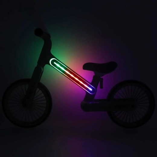 Integrovaný LED pásek v rámu (RGB) zvyšuje bezpečnost při snížené viditelnosti a dodává jízdě efektní vzhled. Ovládání tlačítkem pod rámem.