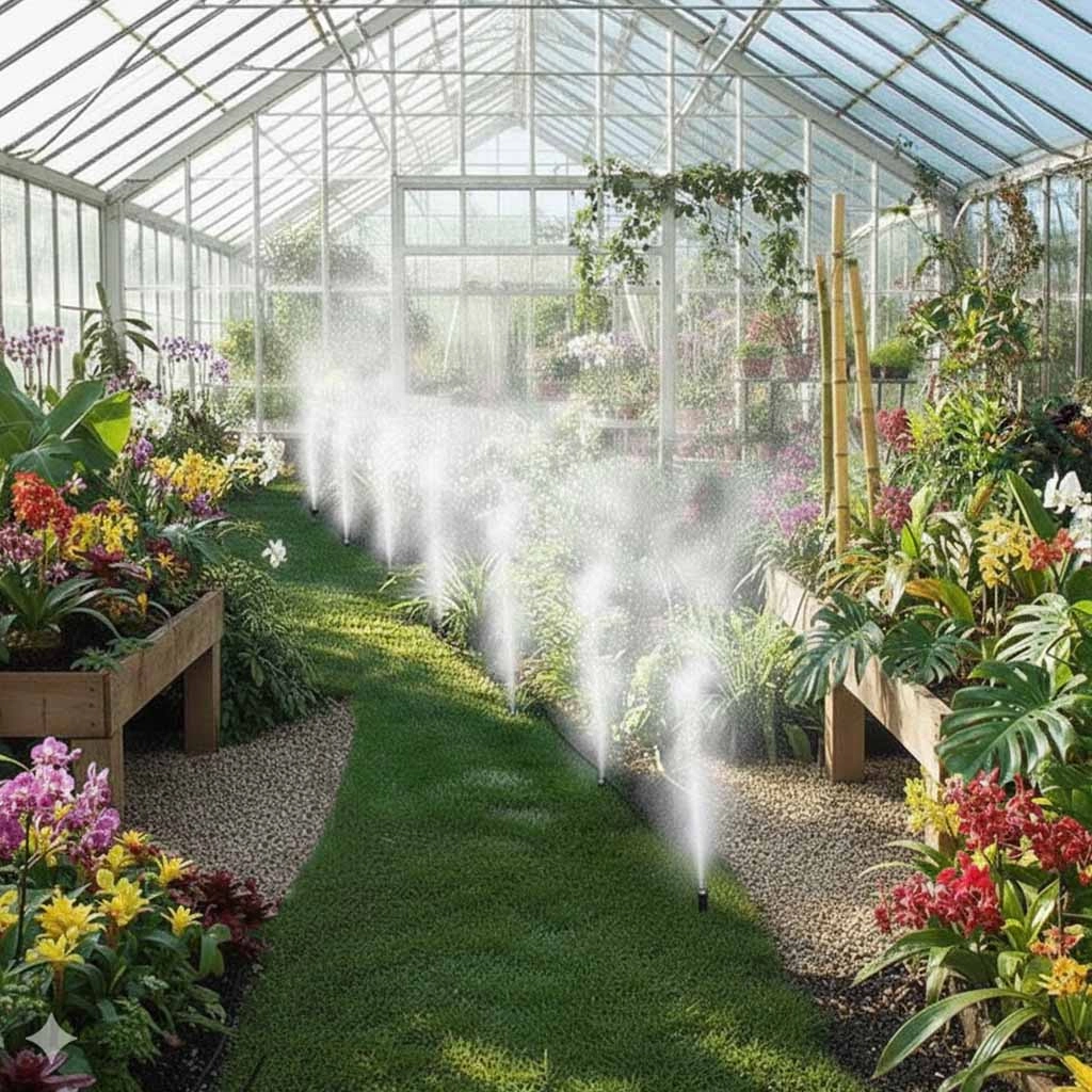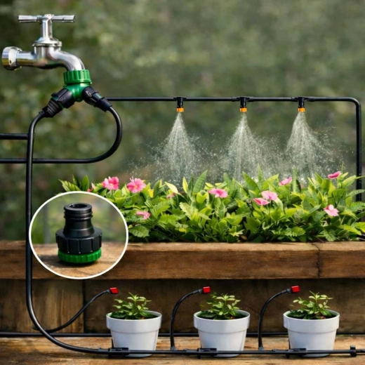 Instalace je rychlá a intuitivní díky rychlospojkám, rozdělovači ve tvaru Y a bohaté sadě konektorů. Systém je ideální pro terasy, balkony, pergoly i skleníky, kde zajistí rovnoměrné zavlažování a příjemné klima bez víření prachu a pylu. Odolné materiály ABS a PVC garantují spolehlivost a dlouhou životnost.