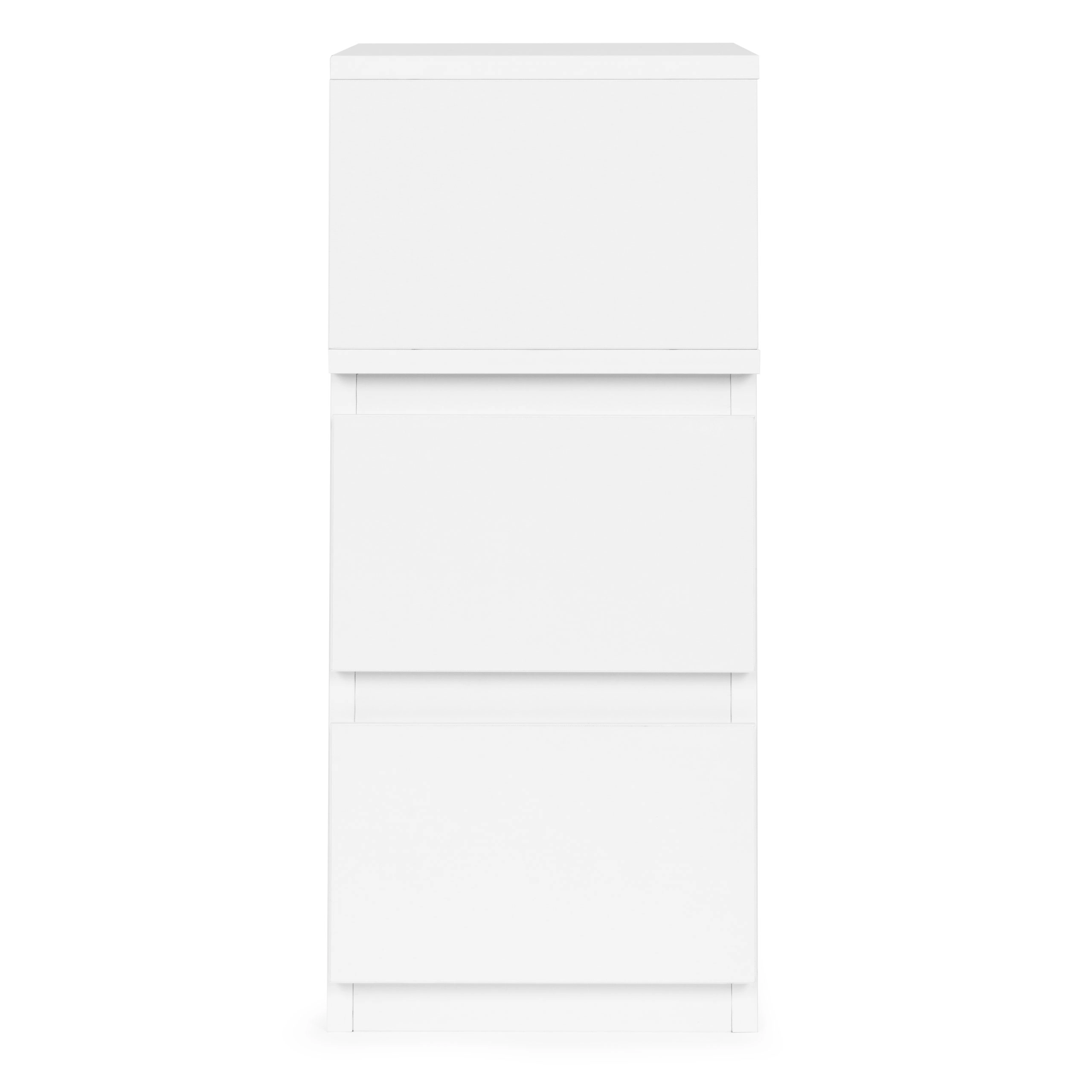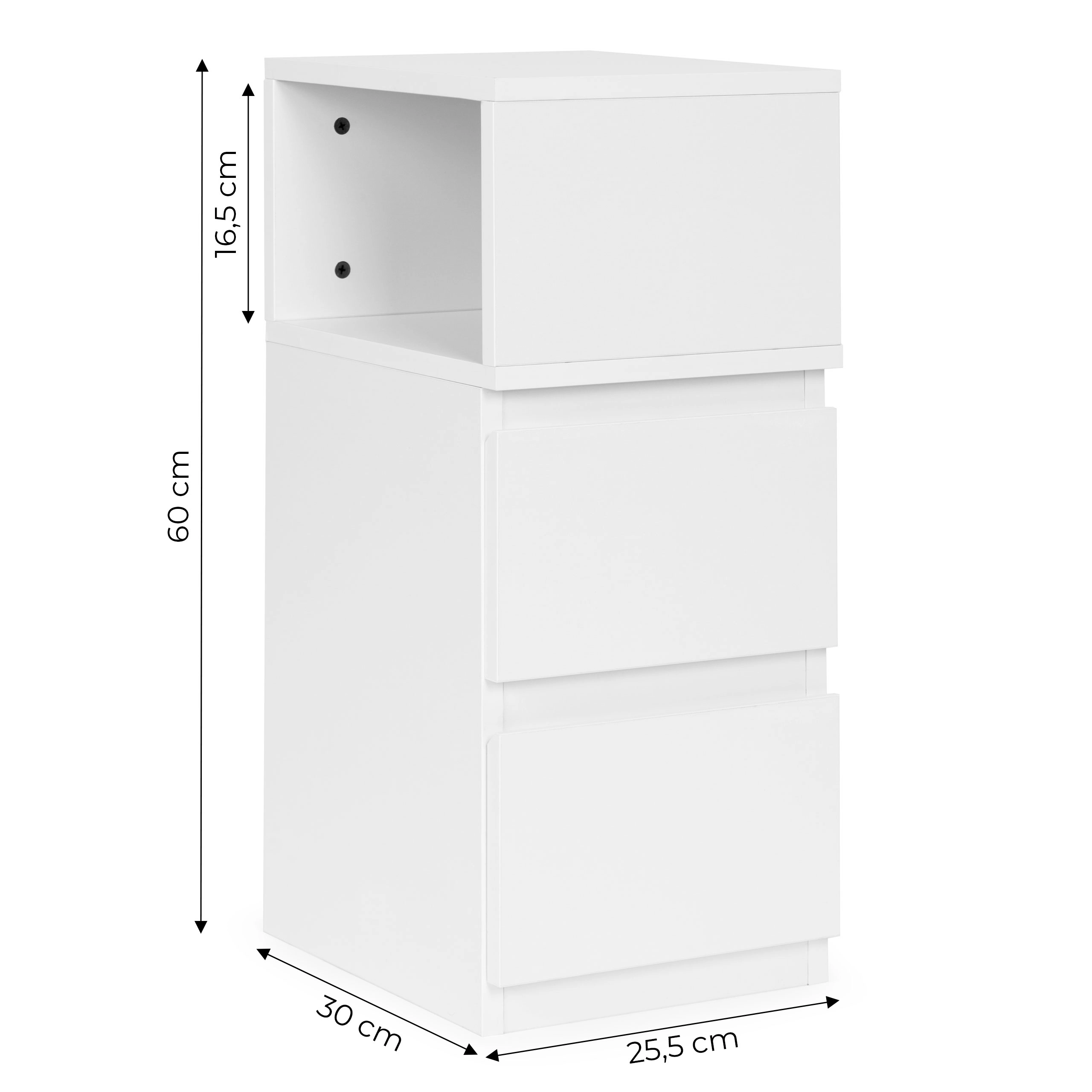 Promyšlené úložné řešení zahrnuje 2 prostorné zásuvky pro drobnosti a otevřenou polici pro to, co chcete mít po ruce. Stolek je vyroben z odolné MDF, takže je stabilní a spolehlivý i při každodenním používání. Minimalistický, kompaktní design snadno zapadne do moderních i menších interiérů.
