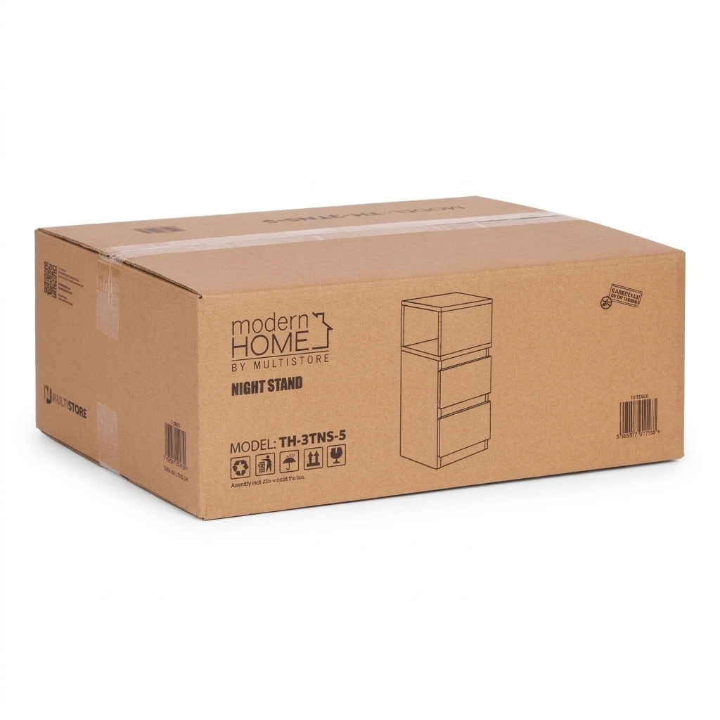 Moderní noční stolek ModernHome v elegantní bílé barvě kombinuje praktické uložení a atmosférické LED osvětlení. Nabízí 2 prostorné zásuvky, otevřenou polici na dosah ruky a ovládání světla přes dálkový ovladač i mobilní aplikaci s 16 barvami a efekty. Odolná MDF konstrukce zajišťuje stabilitu pro každodenní používání.