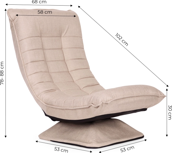 Díky otočení o 360° získáte volnost pohybu, zatímco 4 úhly sklopení si rychle přizpůsobíte aktuální aktivitě – od soustředěného posezu po uvolněné lenošení. Snímatelný potah na zip z lněné tkaniny lze prát až na 30 °C, takže je údržba jednoduchá a křeslo zůstane dlouho jako nové.