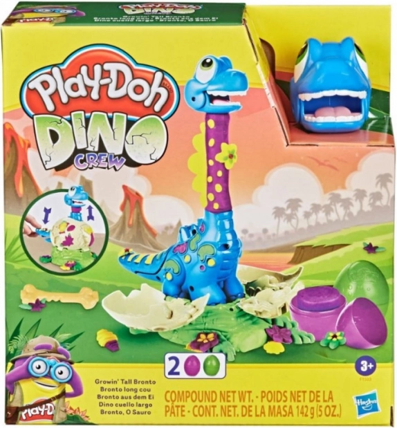 Objevte zábavu s kreativní sadou PLAY-DOH, ve které se malý brontosaurus vylíhne z vajíčka a jeho krk se kouzelně prodlužuje! Děti mohou dinozdobit listy, květinami, kostmi i vtipným motýlkem. Součástí jsou 2 vajíčka s netoxickou plastelínou PLAY-DOH ve 3 barvách – ideální pro rozvoj fantazie a jemné motoriky dětí od 3 let.