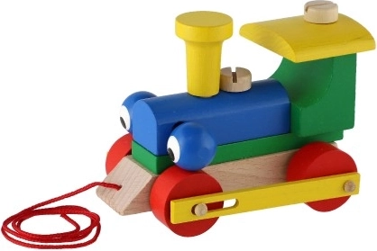 - Dřevěná tahací mašinka s montážními díly