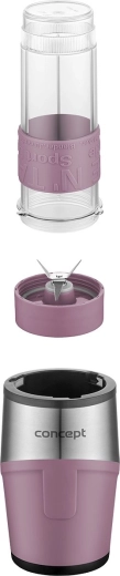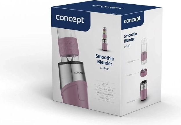 Kompaktní smoothie mixér s výkonem 500 W pro rychlou přípravu nápojů přímo do přenosných lahví. Dvě odolné Tritanové láhve s víčkem a poutkem, bezpečnostní zámek, protiskluzová základna a rychlost až 23 000 ot./min zajistí snadné, čisté a spolehlivé mixování smoothie, koktejlů i ledové kávy.