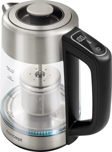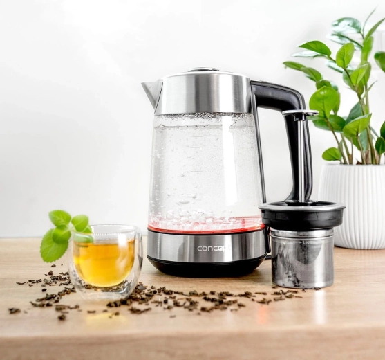 Součástí balení je speciální víko se sitkem na čaj, které umožní louhovat sypané i porcované čaje přímo v konvici. Po dosažení ideální doby louhování jednoduše sítko zvednete nad hladinu a vychutnáte si čistou, plnou chuť bez přeluhování.