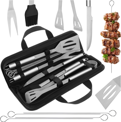 - 4× špíz (nerez), 1× obracečka (nerez), 1× kleště (nerez), 1× štětec (nerez + silikon), 1× vidlice (nerez), 1× nůž (nerez), pevné pouzdro se 2 madly, vícejazyčný návod, transportní balení výrobce