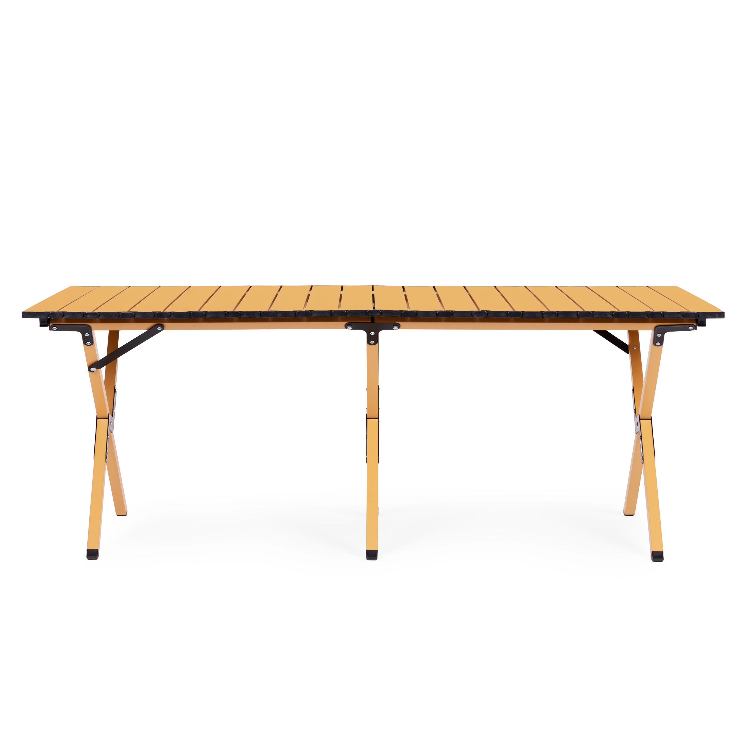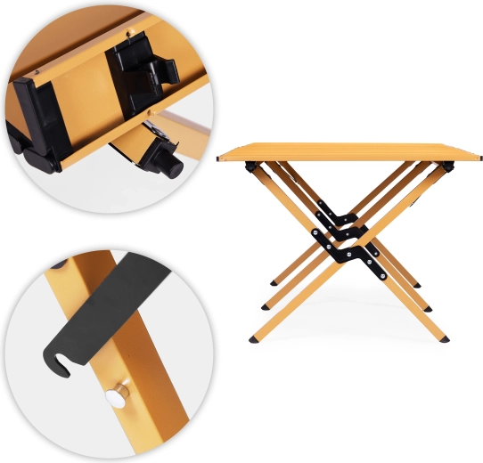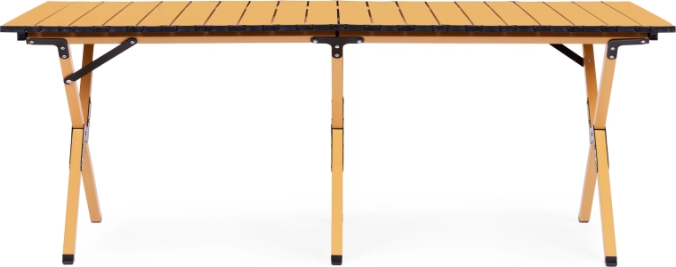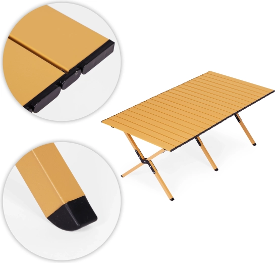 Užijte si pohodlí kdekoliv venku – tento skládací stůl poskytne stabilní plochu pro jídlo, nápoje i kempingové doplňky. Díky robustnímu rámu z uhlíkové oceli a rolovací desce z lamel nabízí výbornou stabilitu, snadnou údržbu a rychlé sestavení.