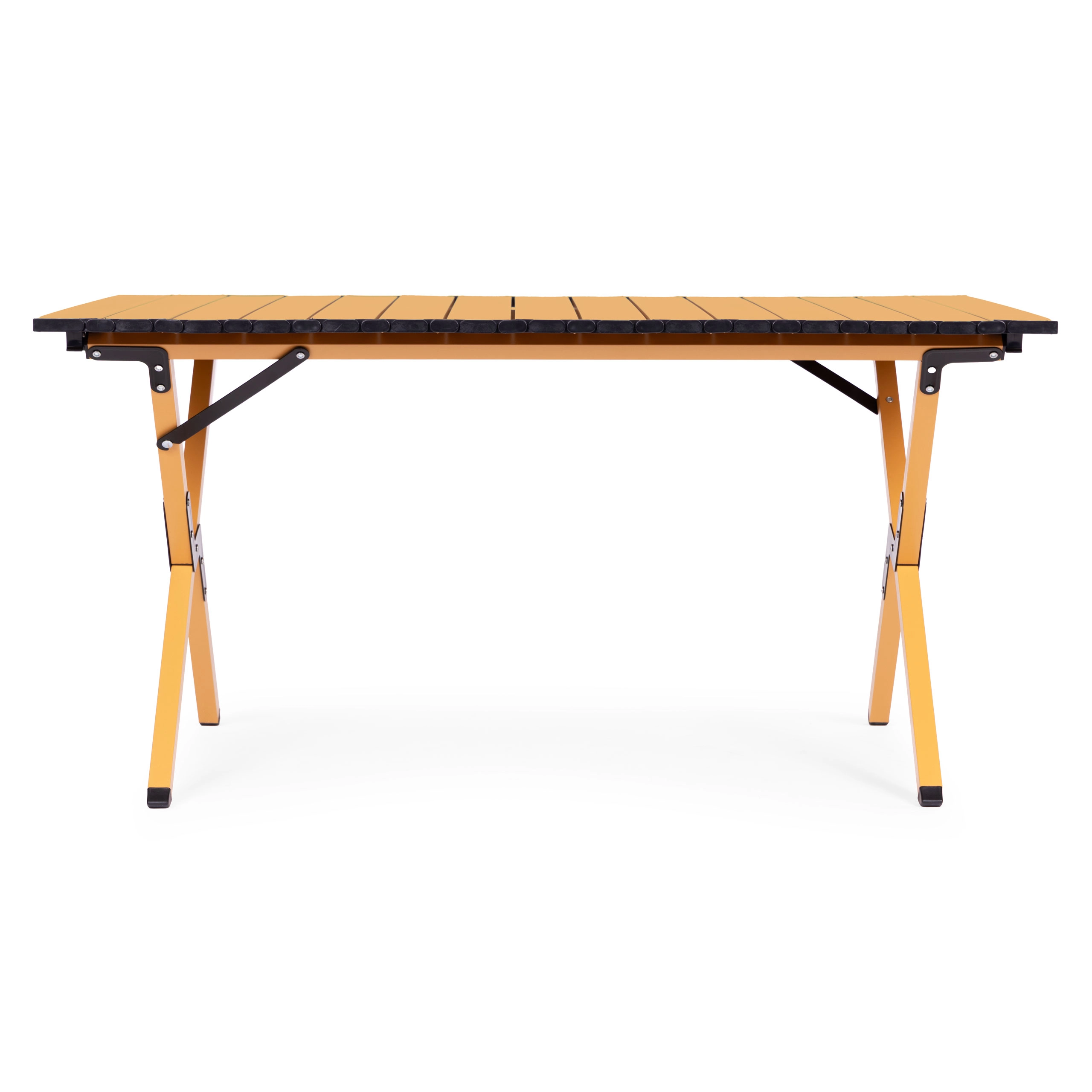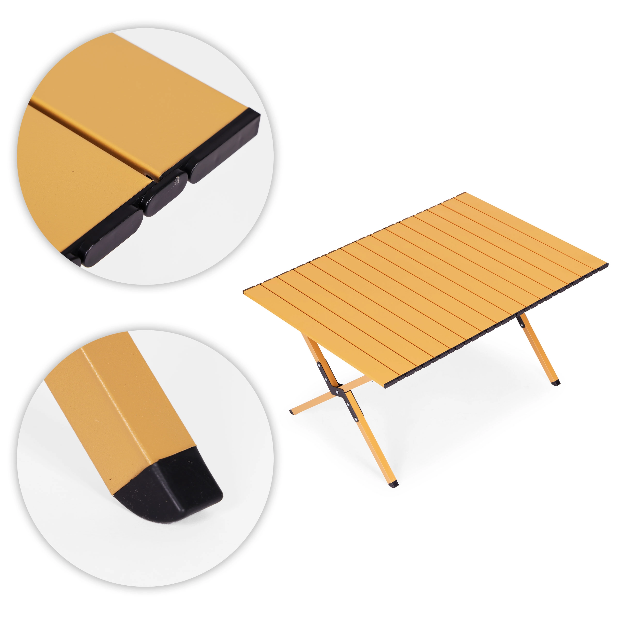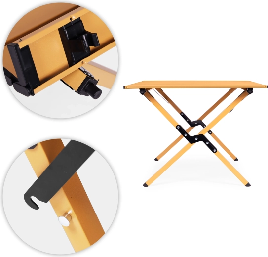 Užijte si pohodlí kdekoliv venku – tento lehce přenosný skládací stůl nabízí stabilní plochu pro servírování jídel, přípravu snacků i odkládání nápojů a vybavení. Uhlíková ocel zajišťuje odolnost, zatímco rolovací deska z lamel se snadno nasazuje pomocí bezpečných klipů. Protiskluzové nožky drží pevně na trávě, hlíně i terase.