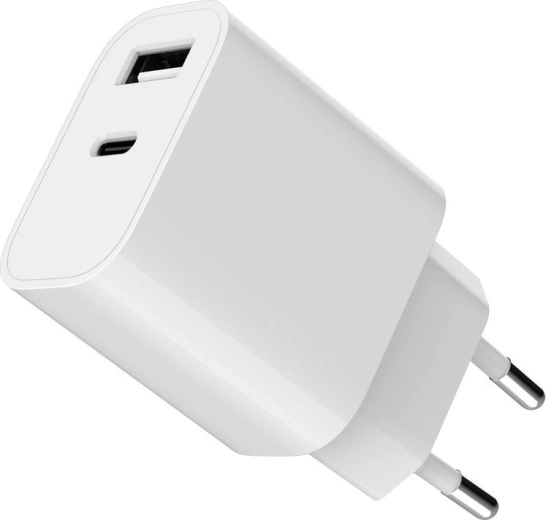 Kompaktní univerzální nabíječka do zásuvky s dvojicí výstupů USB‑A a USB‑C pro pohodlné nabíjení dvou zařízení současně. Poskytuje 5 V / 2.4 A celkového výkonu, je ideální pro smartphony, tablety a příslušenství a díky EU vidlici ji jednoduše zapojíte do standardní zásuvky.