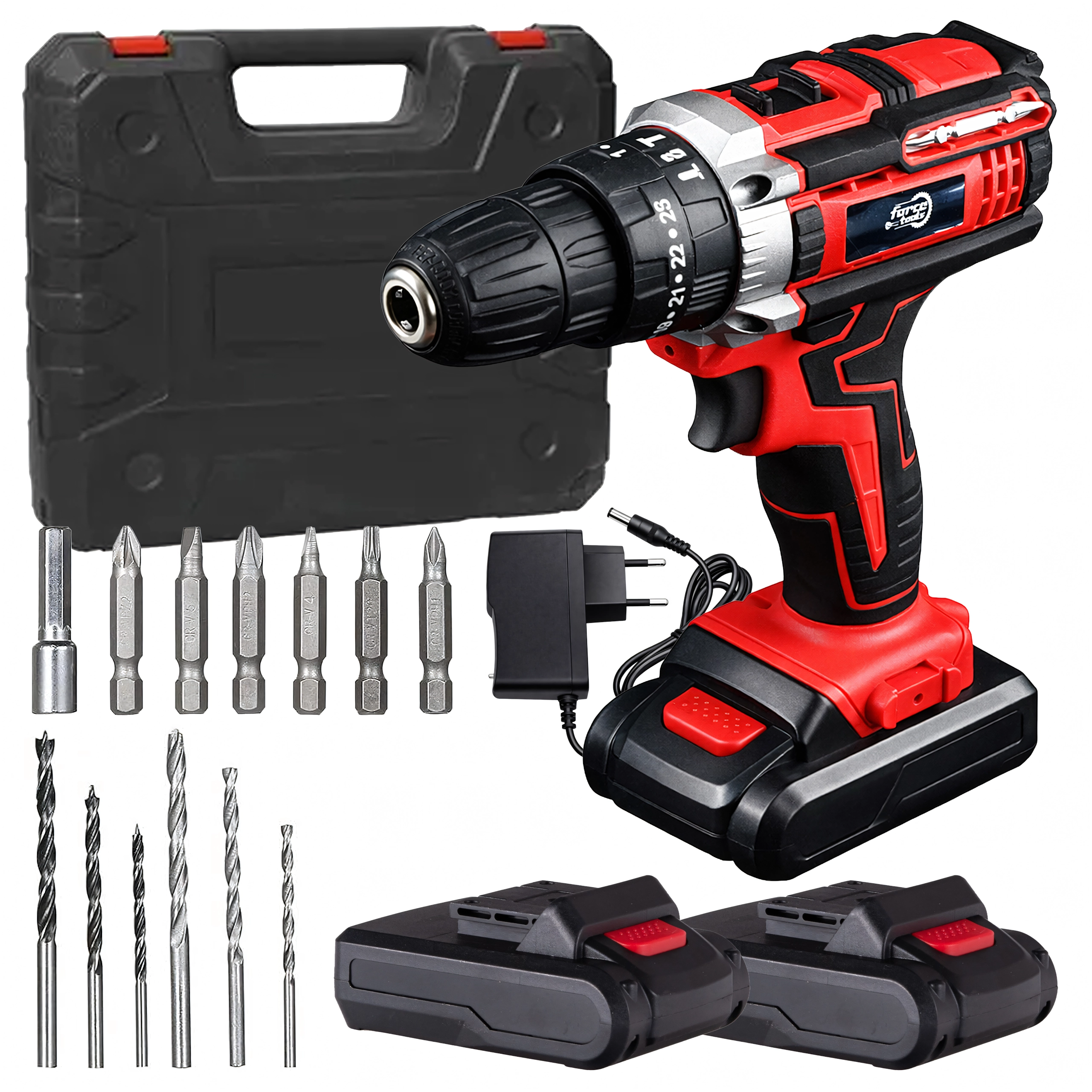 Výkonná aku vrtačka/šroubovák 18 V pro pohodlné vrtání a šroubování doma i v dílně. V balení najdete 2× dobíjecí baterii, rychloupínací sklíčidlo, nastavení momentu, LED osvětlení a praktický kufr s příslušenstvím pro snadné přenášení.
