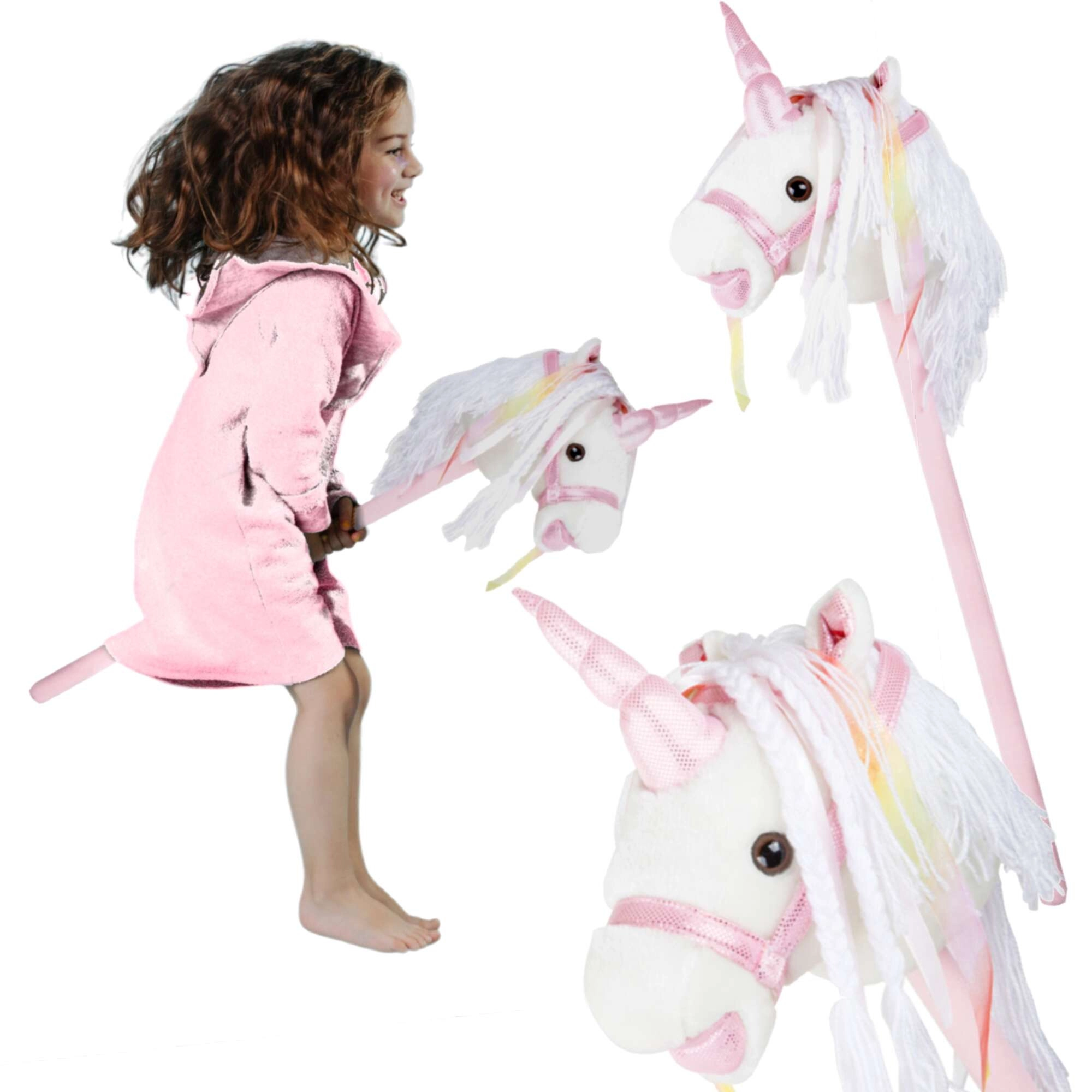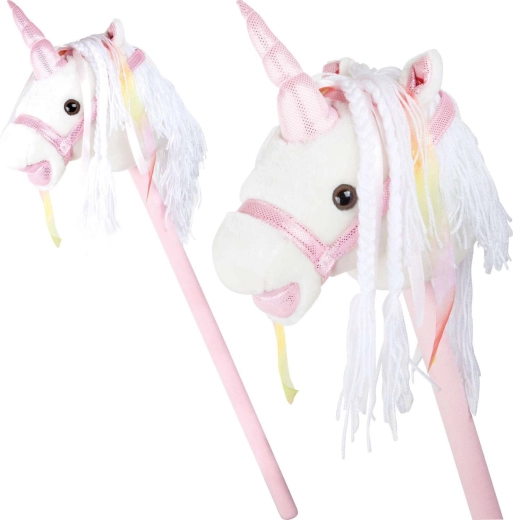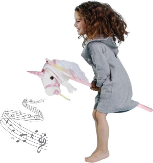 Tento jednorožec na tyči podporuje pohyb, fantazii a role-play. Jemný plyš je příjemný na dotek, ozdobná hříva a stužky dodají každé jízdě kouzelnou atmosféru. Po stisknutí tlačítka v uchu se ozvou realistické zvuky klusu a ržání, které dětem ještě více zpřítomní hru na ježdění.
