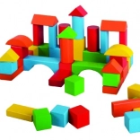 Barevná dřevěná stavebnice obsahuje 50 kvalitně opracovaných kostek různých tvarů pro malé stavitele. Podporuje jemnou motoriku, kreativitu a prostorovou představivost. Vyrobeno z bezpečného dřeva, splňuje normy EU a je vhodné pro děti od 2 let.