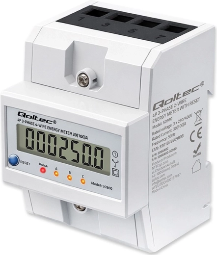 Tento třífázový, čtyřvodičový elektroměr je spolehlivé řešení pro průběžné sledování spotřeby elektrické energie. LCD displej 6+1 zobrazuje odebranou energii v kWh na základě měřicích impulsů, zatímco LED dioda signalizuje aktuální odběr s pulzní konstantou 400 imp/kWh. Díky kompaktním rozměrům a montáži na DIN lištu 35 mm je instalace rychlá a bezproblémová.
