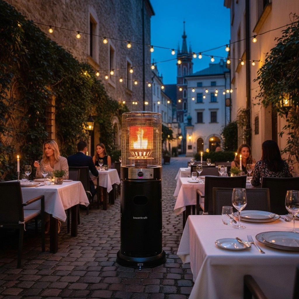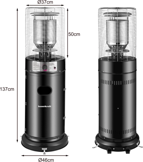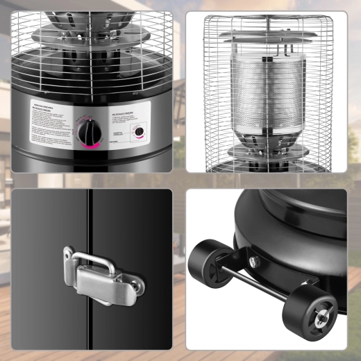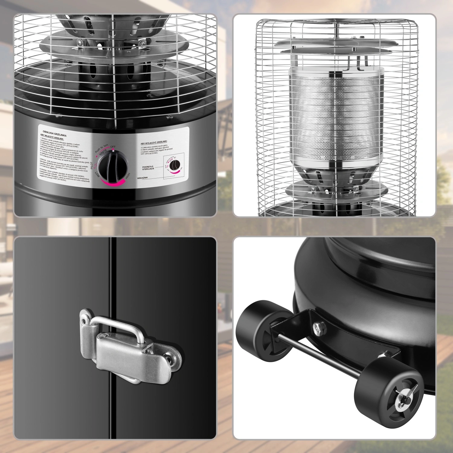 Tento terasový plynový ohřívač promění vaši zahradu či balkon v pohodlné útočiště i v chladnějším počasí. Moderní válcový design s kovovým tělem a krycím sklem elegantně zapadne do soukromých i komerčních prostor. Díky účinnému zářivému teplu poskytuje příjemnou tepelnou pohodu během posezení s rodinou i hosty.