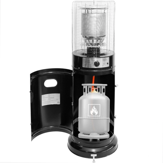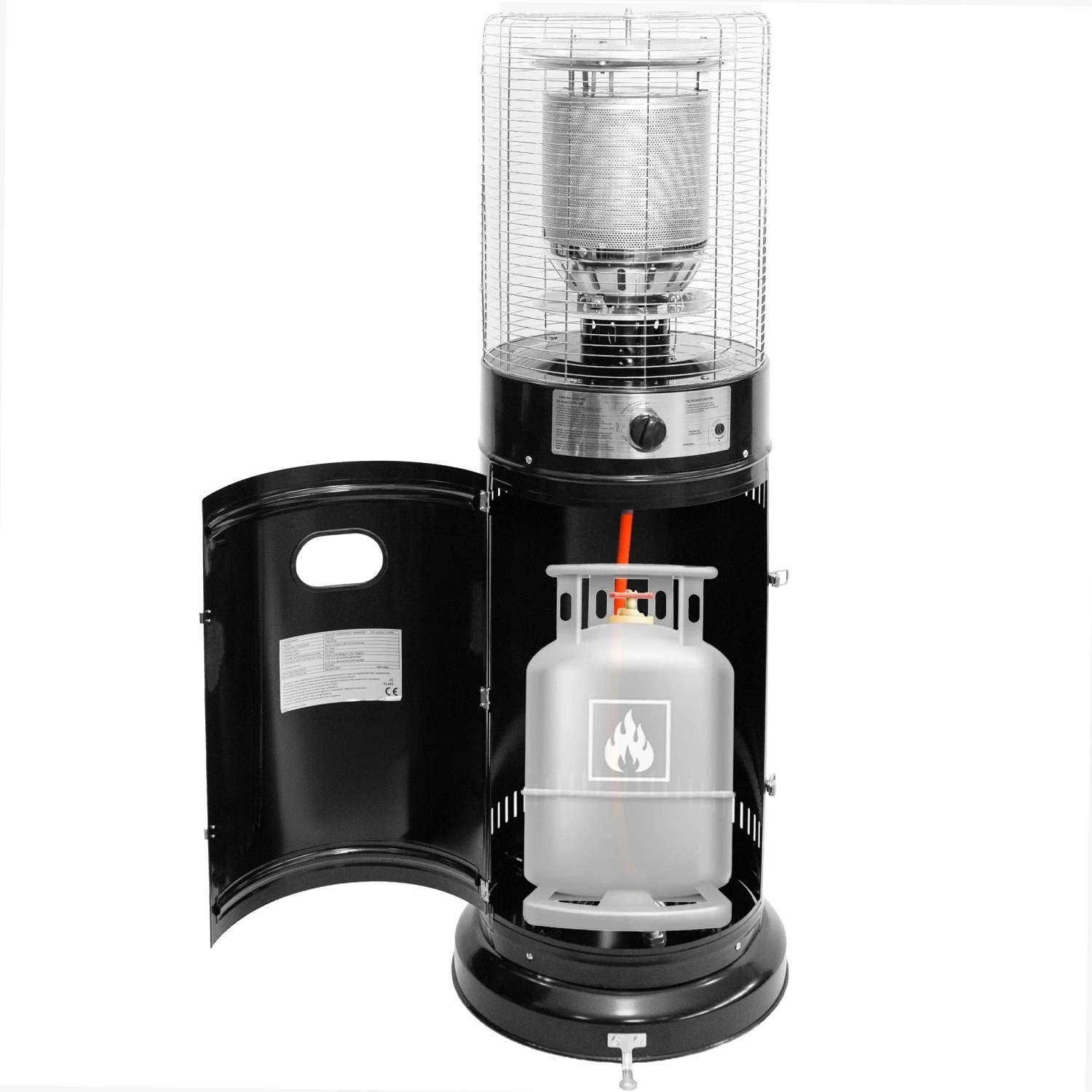 Uzamykatelný prostor pro plynovou láhev do 11 kg a integrovaná kolečka pro pohodlné přesunutí ohřívače dle potřeby.