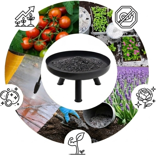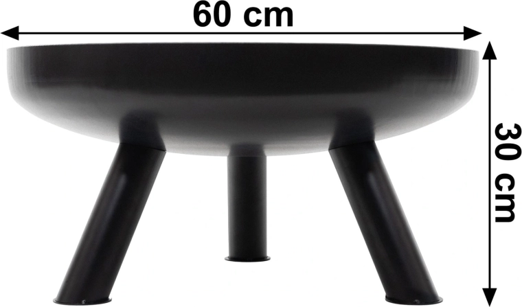 Stabilní třínohý podstavec zvedá misku nad zem, čímž zlepšuje cirkulaci vzduchu, chrání povrch pod ohništěm a zvyšuje bezpečnost. Ohniště je odolné celoročnímu používání – od letních večerů až po zimní posezení. Popel lze navíc ekologicky využít jako zahradní hnojivo bohaté na minerály.