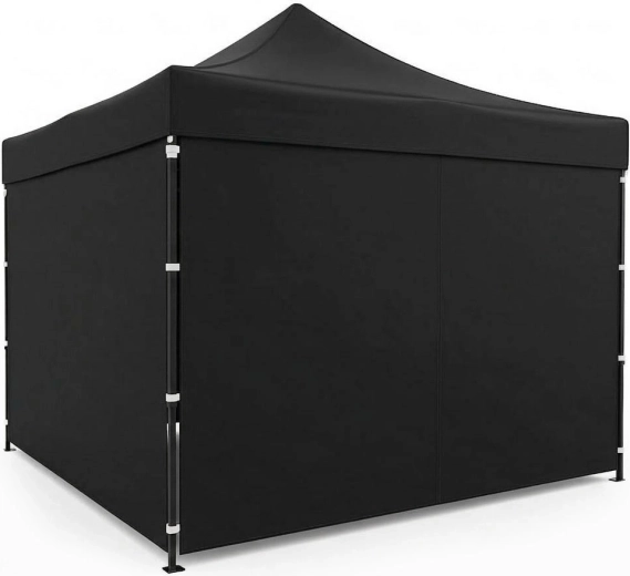 Součástí jsou 4 bočnice se suchými zipy pro rychlé uspořádání interiéru a široký vstup pro komfortní pohyb hostů i vybavení. Kolíky a napínací lana zvýší stabilitu na měkkém podkladu, transportní taška usnadní přenášení i skladování. Ideální pro rodinné oslavy, firemní promo, stánkový prodej, festivaly i sezónní zázemí.