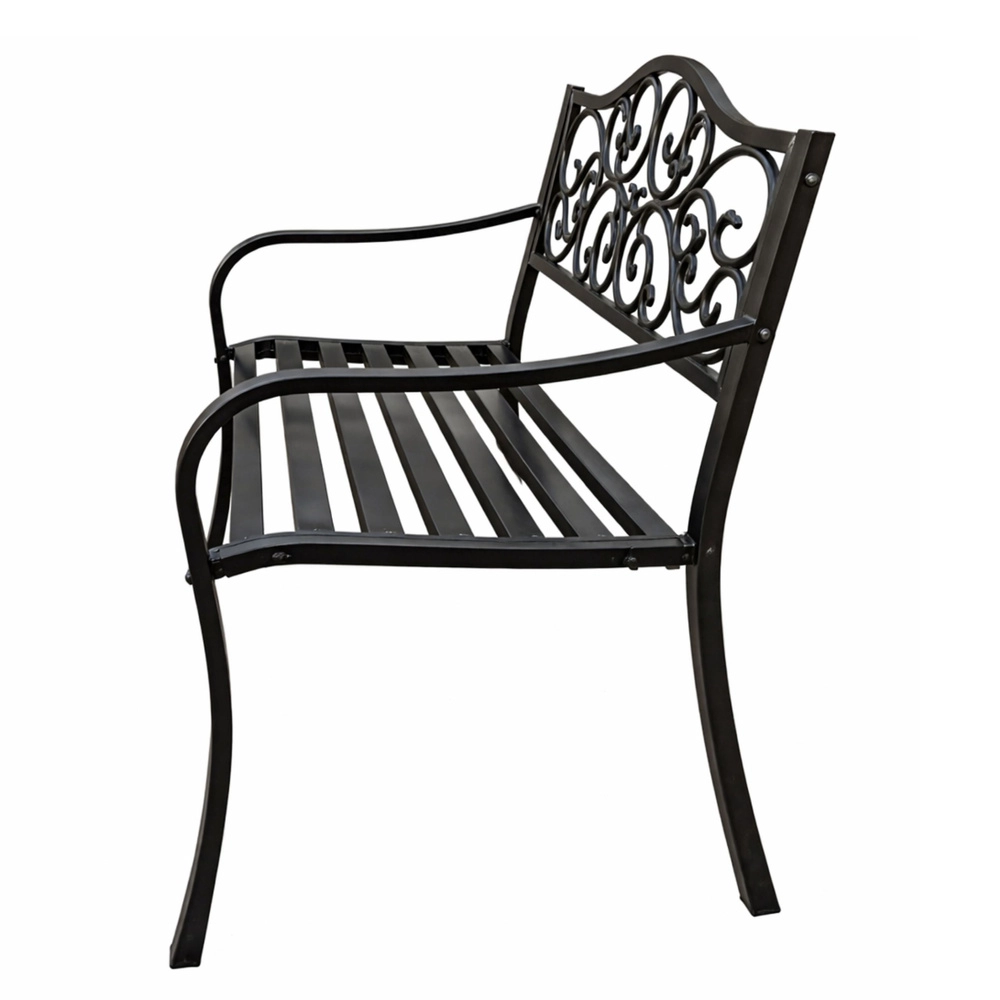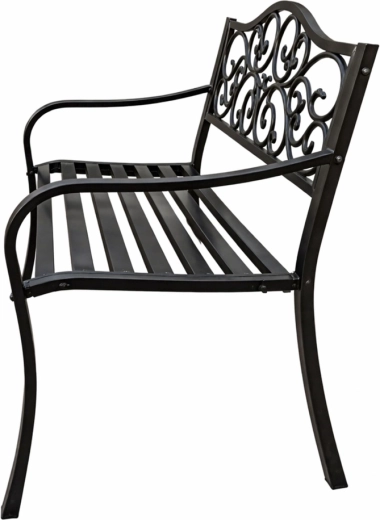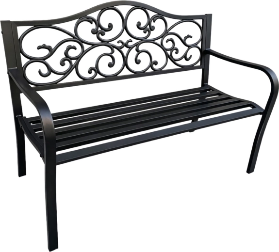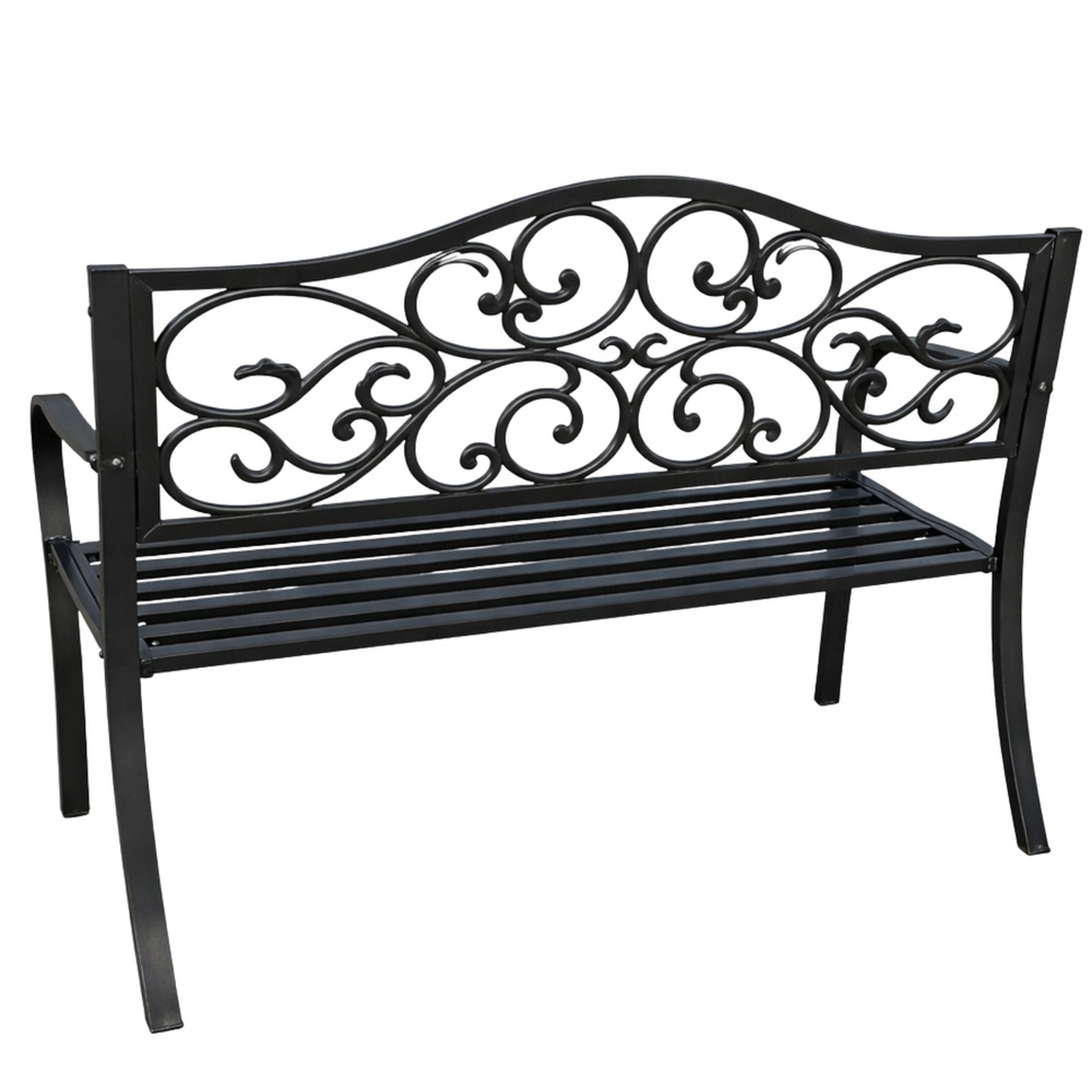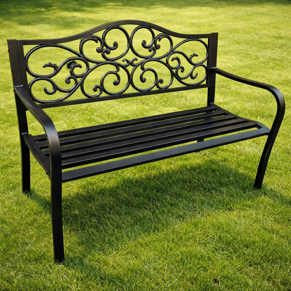 - Stylové opěradlo se scroll dekoracemi pro elegantní vzhled zahrady