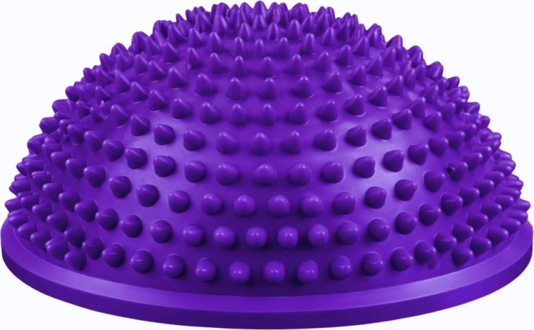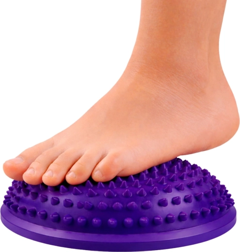Fialová polokoule o průměru 16 cm je univerzální pomůcka pro trénink rovnováhy, stabilizaci středu těla a senzomotorickou stimulaci. Kuželové výstupky jemně masírují chodidla, podporují prokrvení a aktivují svaly klenby. Skvěle se hodí pro děti i dospělé – do domácího prostředí, školek, škol a fyzioterapeutických pracovišť.