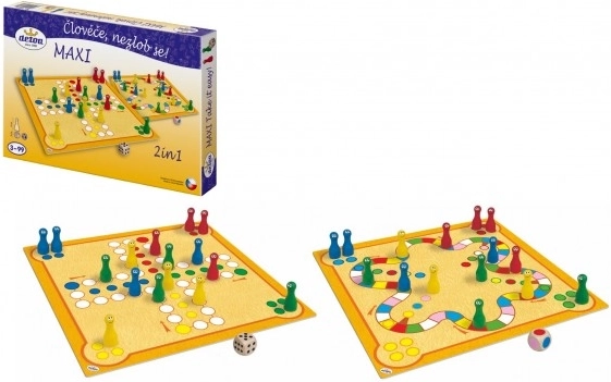 Nová, vylepšená verze klasické rodinné hry potěší malé i velké. Obsahuje velký oboustranný herní plán, 16 barevných dřevěných figurek s obličejem (6 cm) a 2 velké hrací kostky. Díky pevné dřevěné konstrukci a splnění požadavků EU na bezpečnost hraček je ideální pro děti od 3 let.